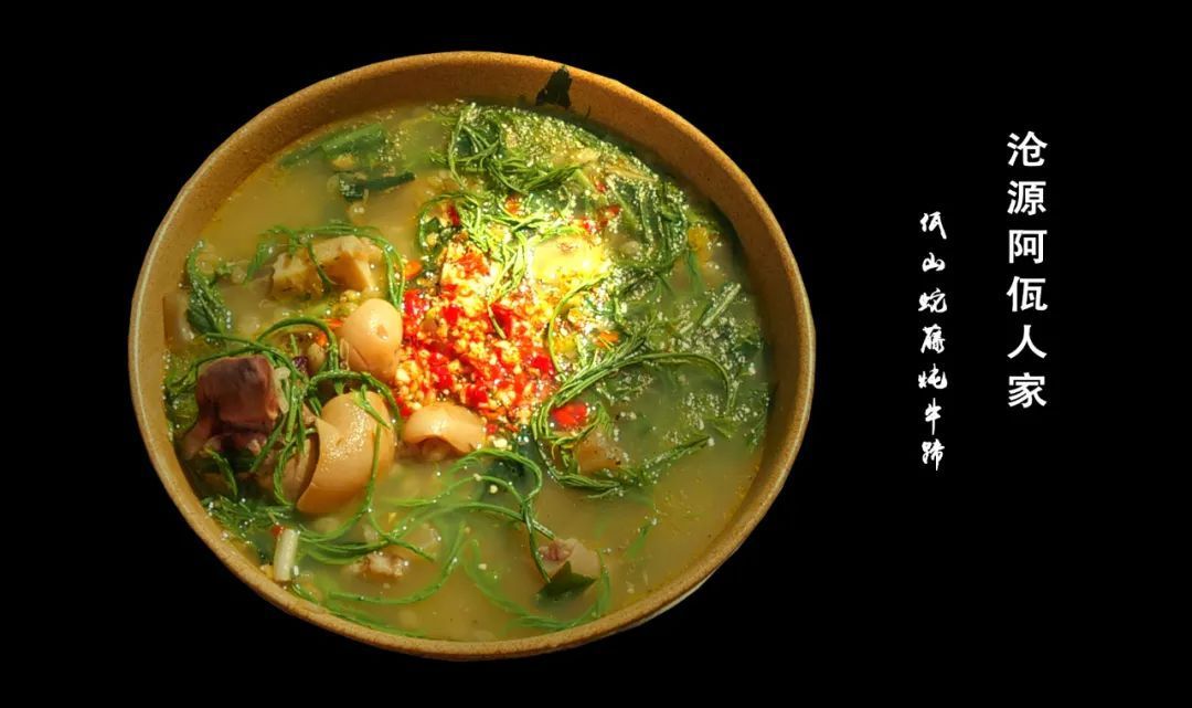 蛇藤,为豆科金合欢属植物,蛇藤祛风湿,强筋骨活血止痛。主治脊椎骨损伤,腰脊肌劳损,风混痹痛。”而牛蹄具有益气补虚,温中暖胃,温补肾阳强筋壮骨之功效,常吃牛蹄对腰膝酸软、身体瘦弱者有很好的食疗作用,有助于青少年生长发育和减缓中老年妇女骨质疏松的速度。是一道独具佤族特色的佳肴。