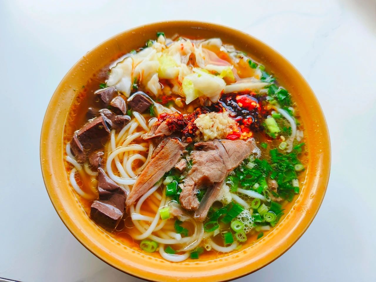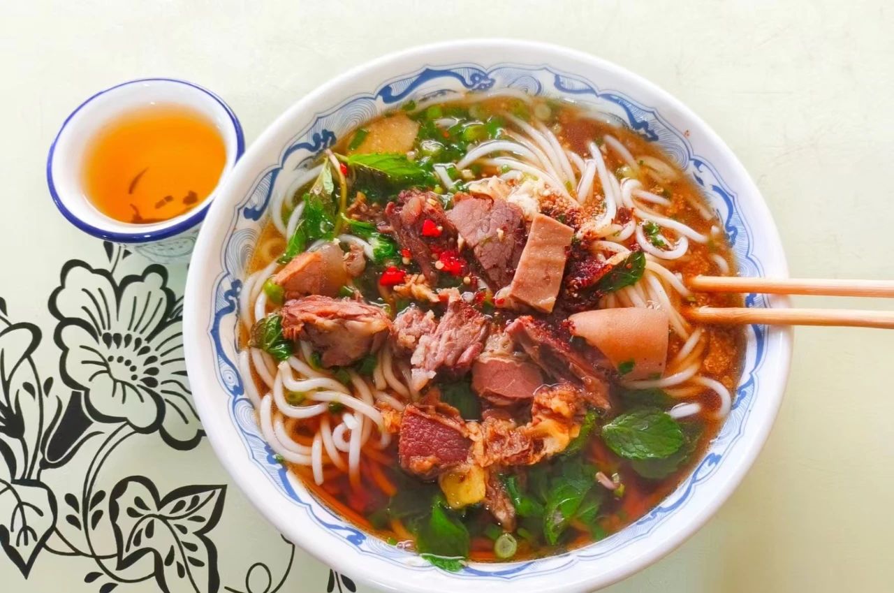 牛肉米线以其筋道的牛肉和鲜香的汤底备受喜爱。牛肉炖煮得十分入味,肉质紧实而有嚼劲。汤底浓郁鲜美,融合了牛肉的香味和各种香料的独特风味,让人回味无穷。
