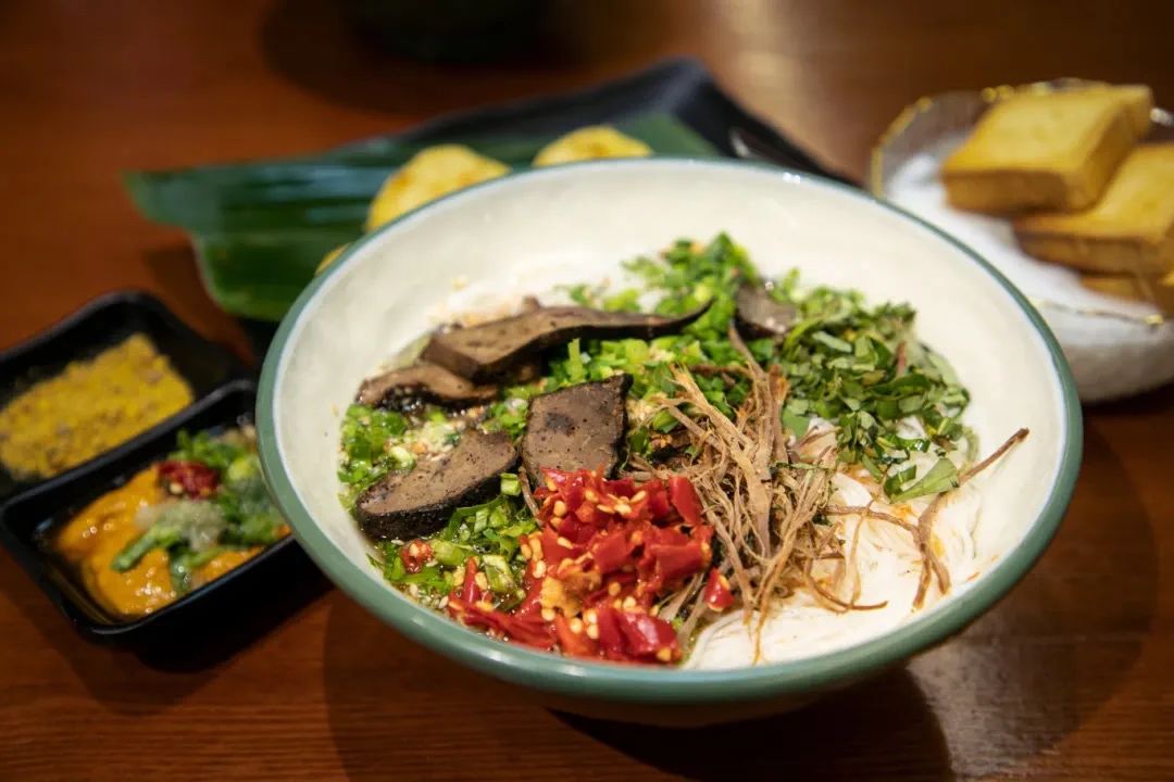 旺子米线是云县的特色美食之一。猪血口感细腻,富有弹性,卤肉的醇香与米线的搭配相得益彰。独特的调料为这道米线增添了浓郁的风味,使其具有独特的口感和香气。吃起来既有猪血的鲜嫩,又有卤肉的卤香,是一道别具风味的美食。