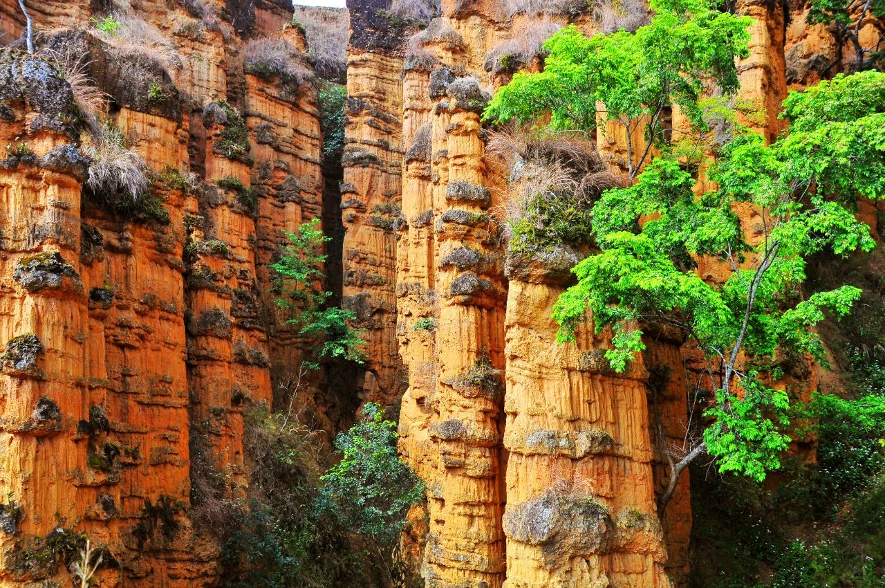 整个土佛区的土佛景观,整体看气势雄伟,蔚为壮观;单尊看千奇百怪,妙不可言。且很多土佛头上有长杂草的,有生绿树的,有覆苔藓的,有挂鲜花的。一尊尊土佛,似根,似塔,似城,似帽,似墙,似鹿,似马……有所似,又有所不似;一排排土佛景观,如群仙下凡,如游龙过海,如万马奔腾,如宫殿矗立,如百兽聚会,如戍兵守城,如群佛诵经……鬼斧神工,真是大自然的杰作。