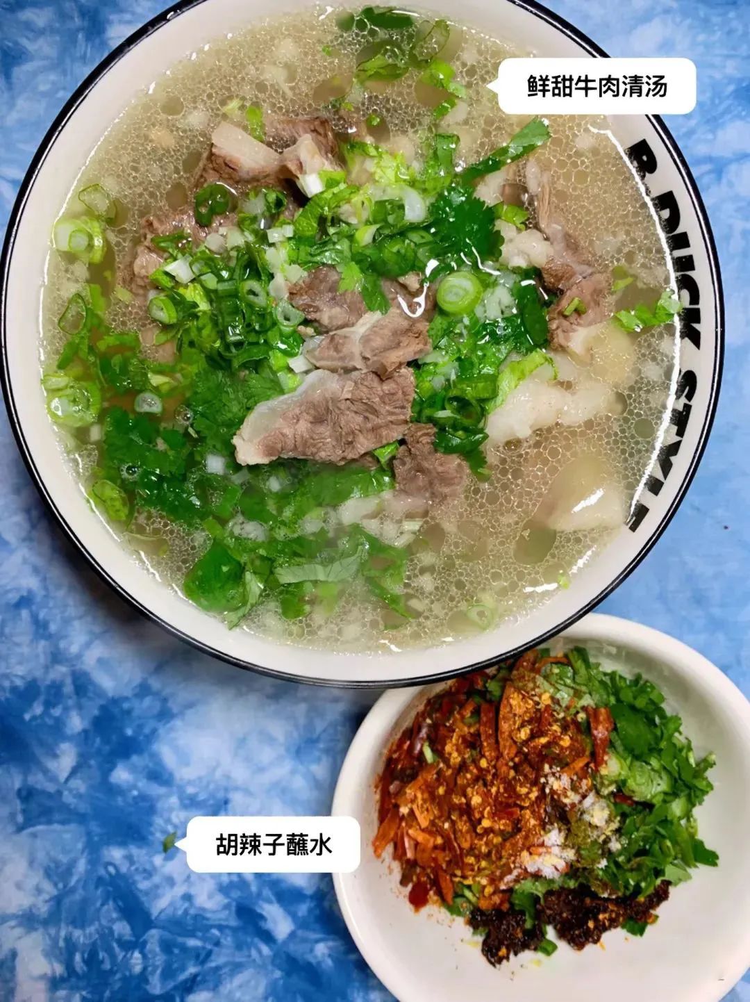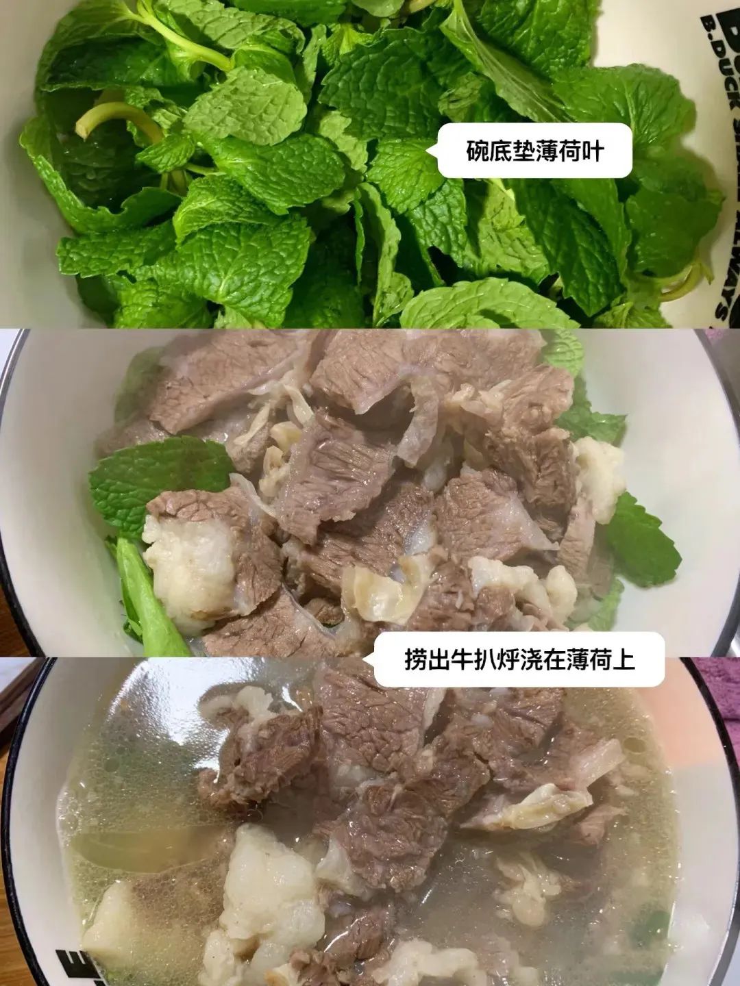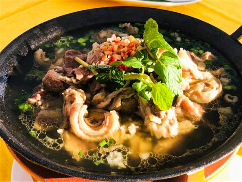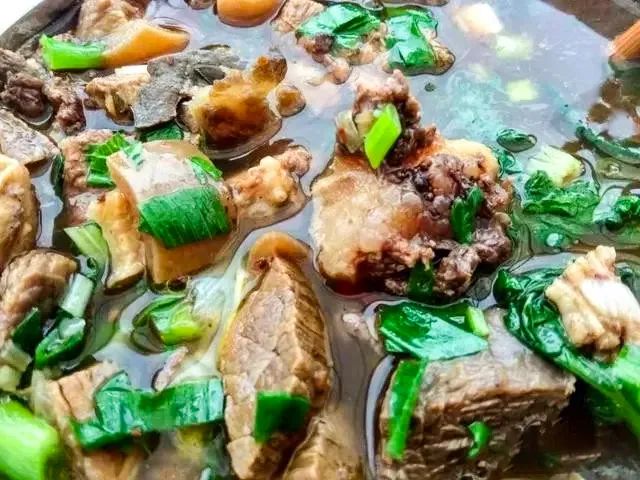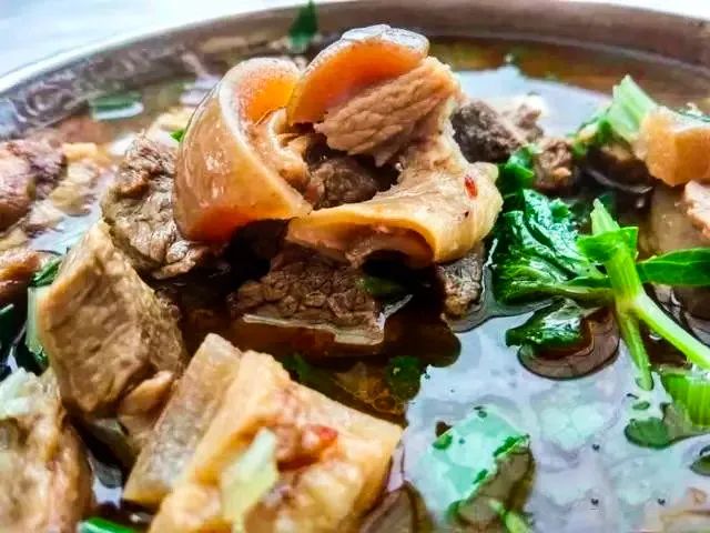 吃牛扒烀时,人们喜欢用薄荷叶打底,带汤捞出牛腩,再撒上香菜、小葱,一口热乎的牛肉汤,温暖了整个冬天。临沧的牛扒烀,不仅肉质精壮、鲜嫩爽口,还滑而不腻、鲜香四溢,是回族的传统美食,更是老少皆宜的大众美食。