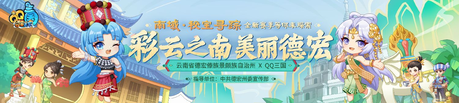 彩云之南,美丽德宏!德宏州携手腾讯萌系Q版游戏《QQ三国》,跨界共创! 品非遗之美,弘民族文化,赏德宏美景,享德宏美食,在这年末年初交接的时刻,时光流转,美好年华,快乐共度!