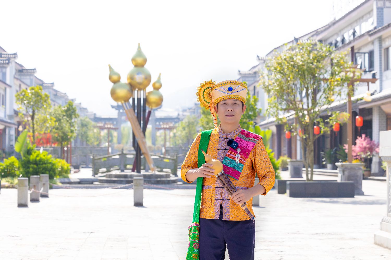 QQ SanGuo specially invited Ni Kaihong,a young Hulusi performer from Dehong,to record the Mangshi Village New Year Song for the new game map Mangshi Village,bringing the joy to the Dai Water-Splashing Festival!