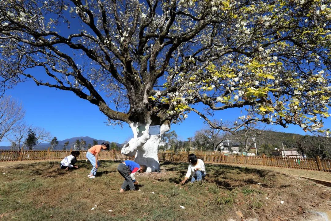 千年玉兰树位于海拔1923米的向阳自然村大山头小组,树干直径1.4米,树高15米,经专家认定树龄大约有2900多年,是云南现存最古老的玉兰花树。每年深冬到初春为盛花期,花开时树叶掉落,上千朵玉兰花开满枝头,花朵硕大,花瓣洁白无瑕,颇为壮观。