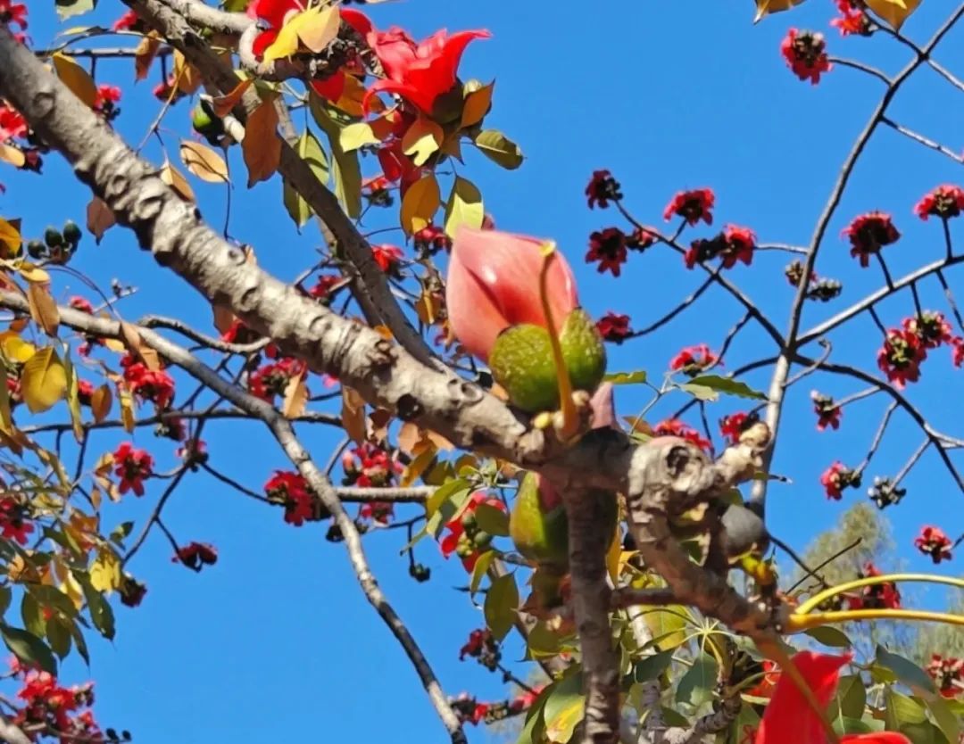 木棉花,别名攀枝花、英雄花,树姿巍峨,花开艳丽又不媚俗,花瓣颜色红得犹如壮士的风骨,在阳光的照射下,热烈且滚烫,这是万物复苏的季节,也是积蓄能量的起点。让我们沐浴在这热烈的红韵之中,跟随春天的信使——木棉花,共同迎接春日的绽放,携着新的希望,奋力迈向绚烂美好的未来。