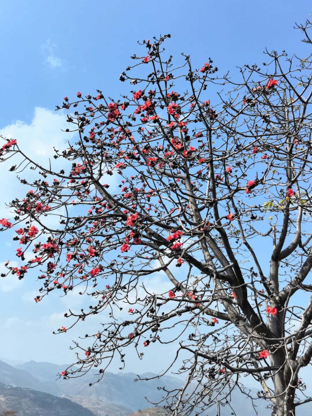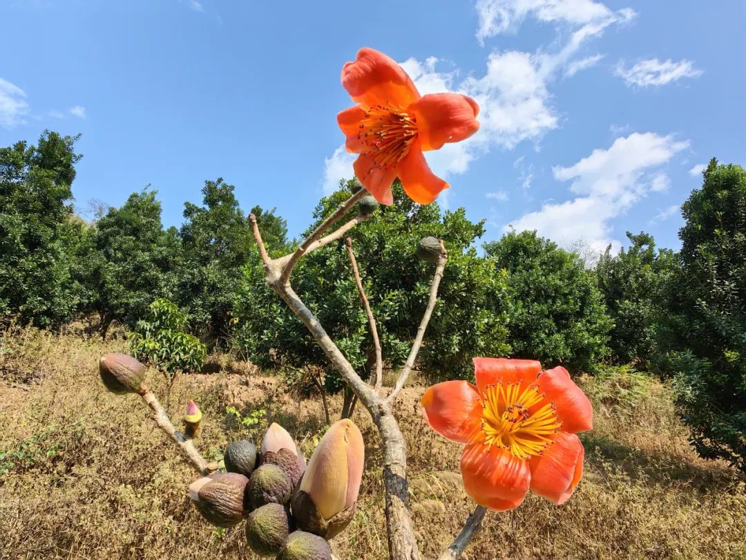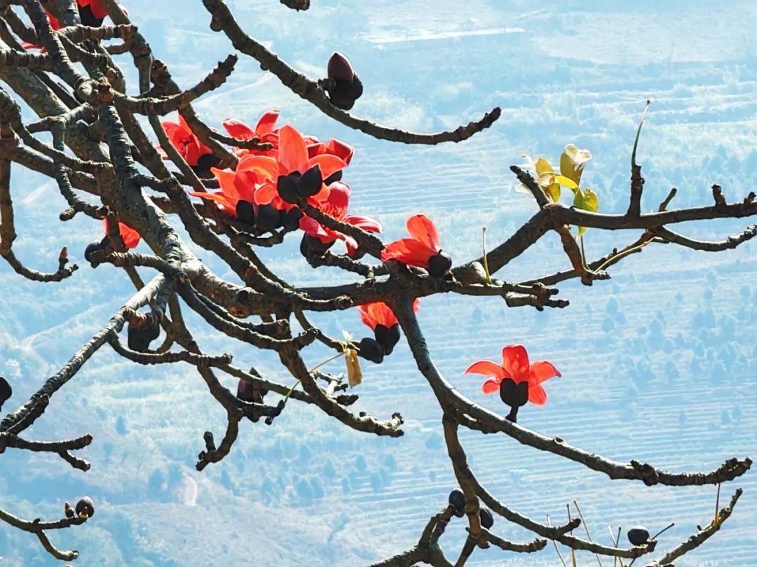 立春过后,亚练乡木棉花敏感地捕捉到了春日的第一缕信息,悄然绽放的火红花朵,独具韵味,奏响了春之序曲。传递着“严寒之后,春光必至”的坚定信念。