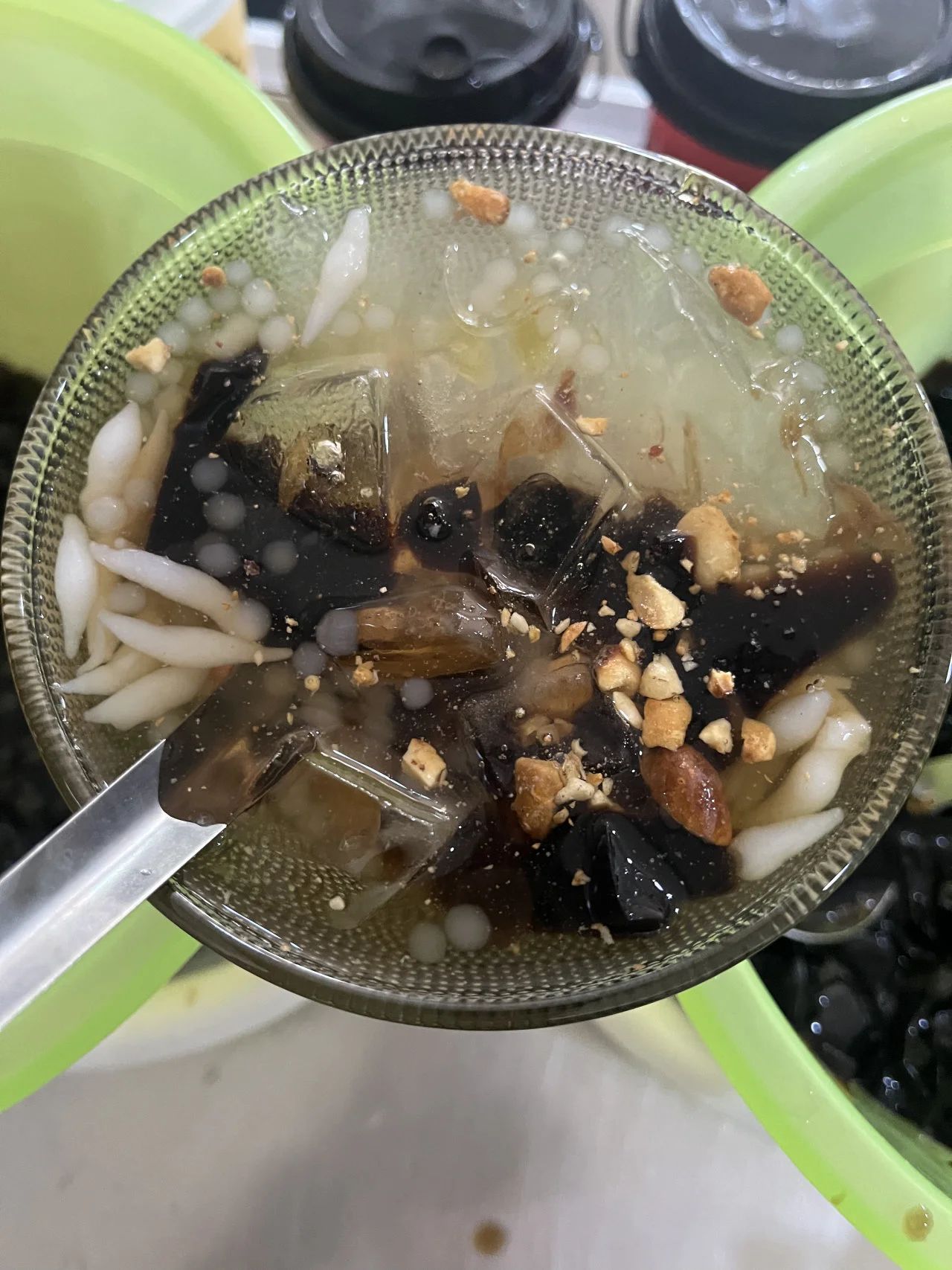 冰粉凉虾则是凉品中最普遍的一种。加入老板自制的糖水,手工制作的冰粉和凉虾,再放上临沧冰粉必不可少的玫瑰酱和花生碎,一份临沧人独有的冰粉就这样制成了;在冰粉的基础下,如果再加上面包干和炼乳,那就是一份泡鲁达了。