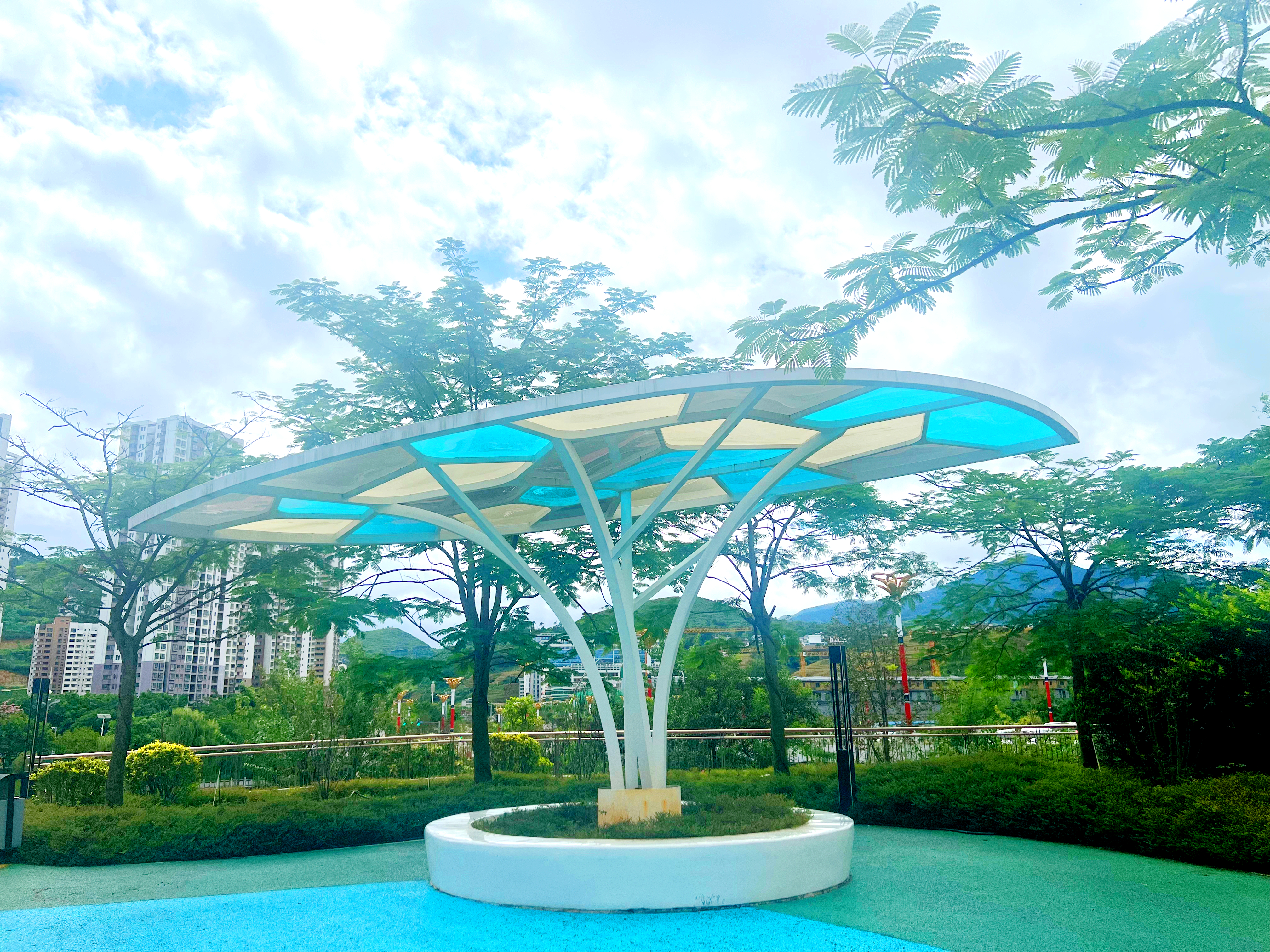 循着这份惬意往深处走,“云栖”便悄然出现在眼前。它是给过往旅人歇脚的港湾,也是给本地居民安放闲暇的角落。孩子们在光影间奔跑嬉戏,大人在亭廊下闲谈说笑,没有喧哗,没有拥挤,只有被日光筛过的安宁,和空气里浮动的、简单的欢愉。
