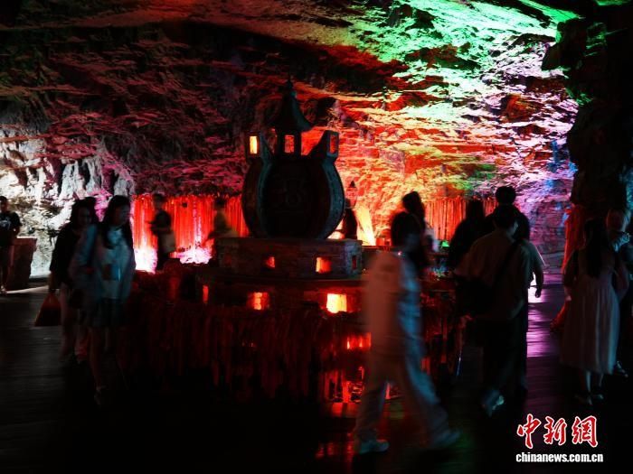 图为游客在贵州省铜仁市万山区朱砂古镇的矿洞内参观游玩。记者周燕玲摄