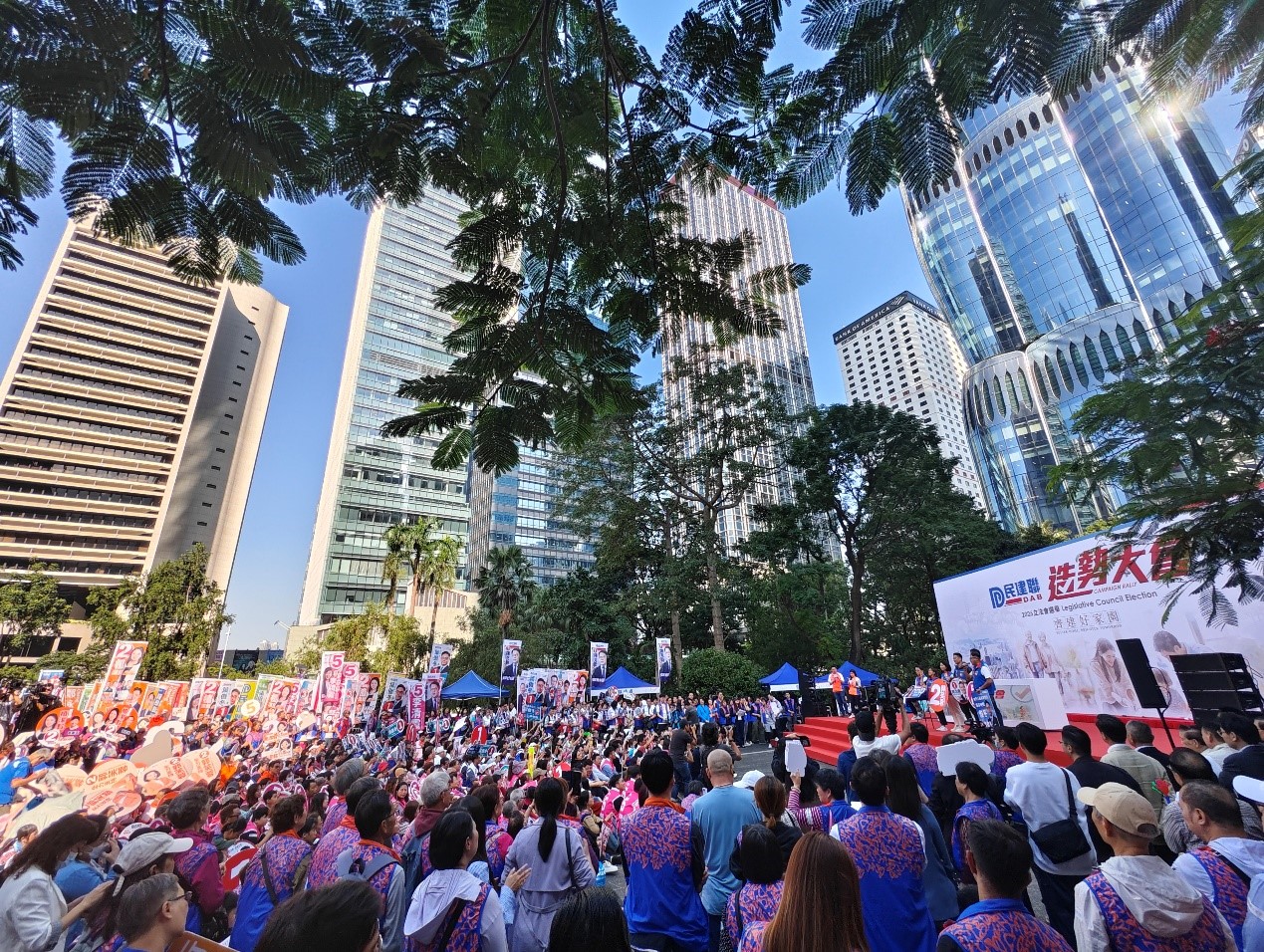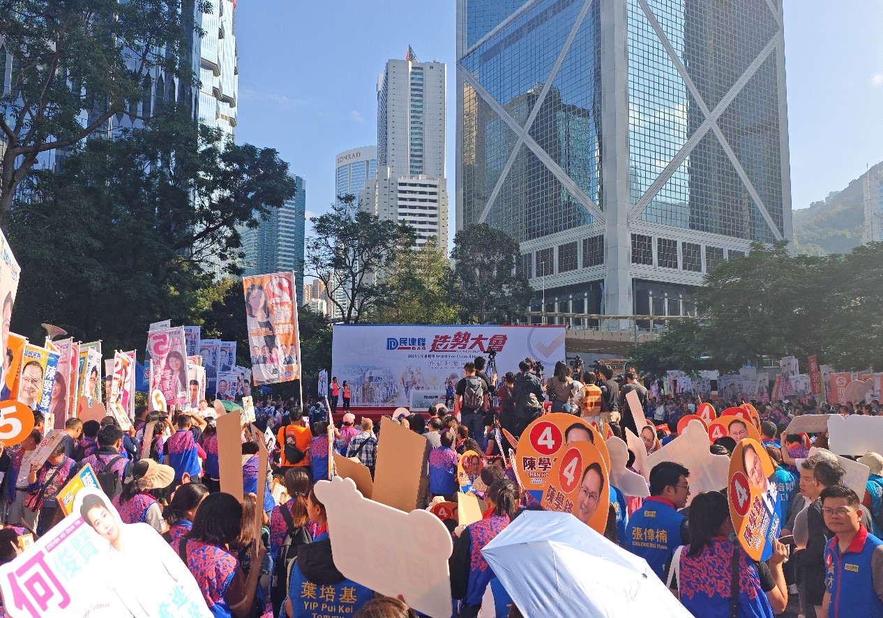 11月23日,香港有政团在中环遮打花园举行香港特区2025年立法会换届选举的造势活动。 中新社记者侯宇 摄