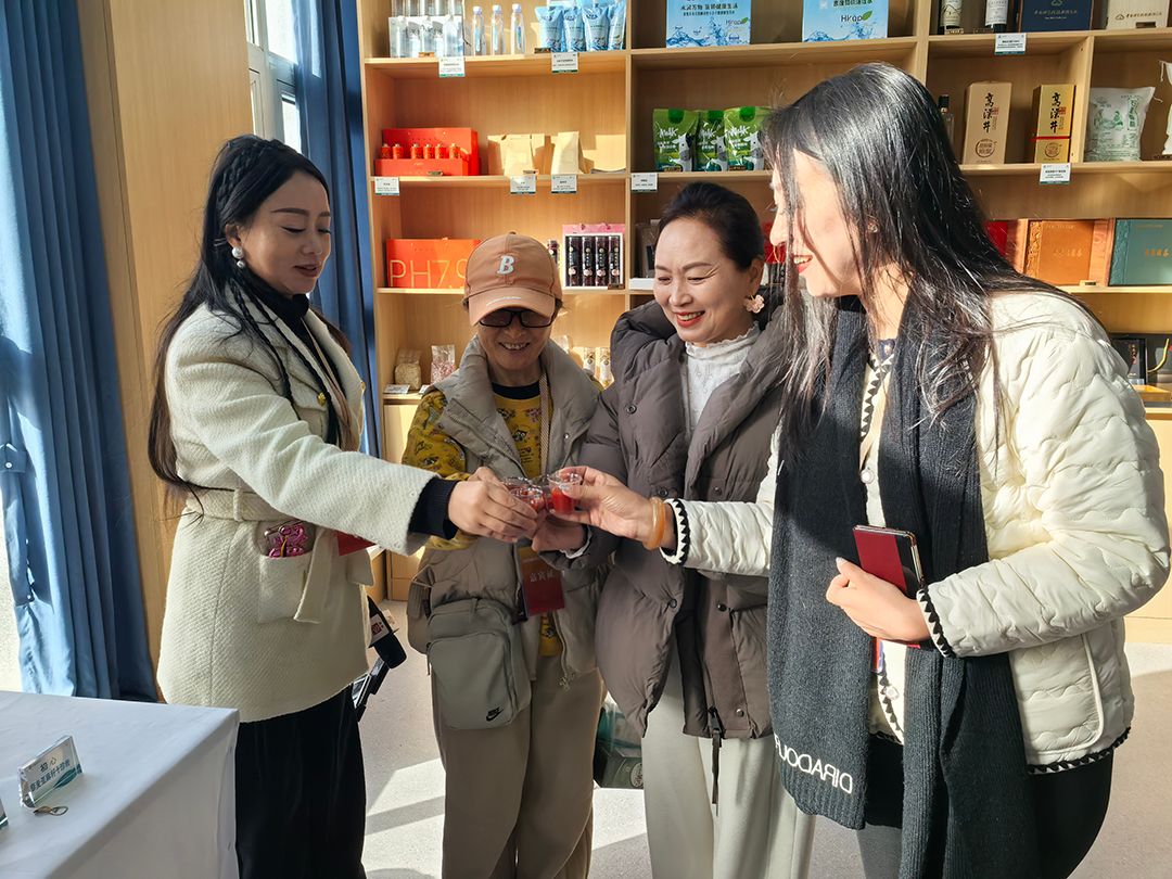 而在盐碱地特产直营店内,顾客们正在选购带着盐碱地独特印记的农产品。
