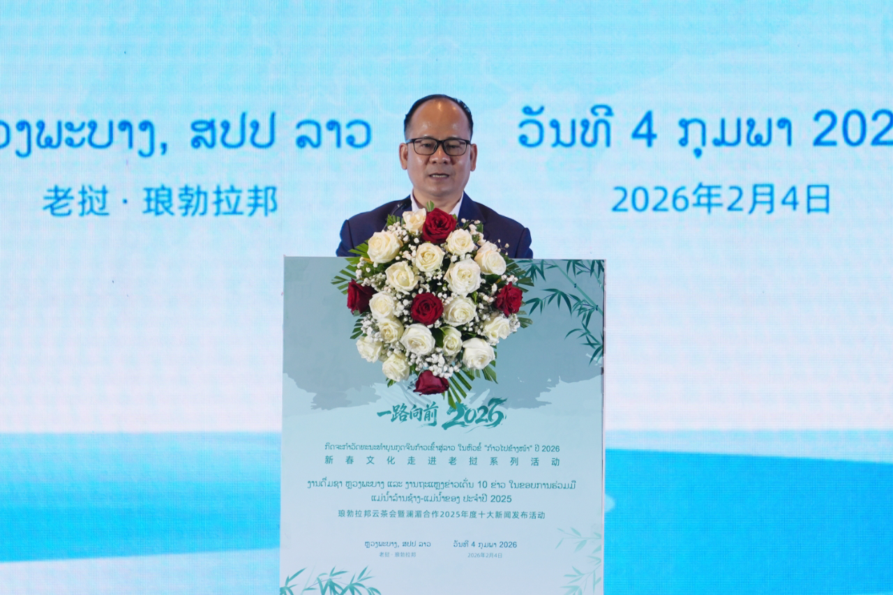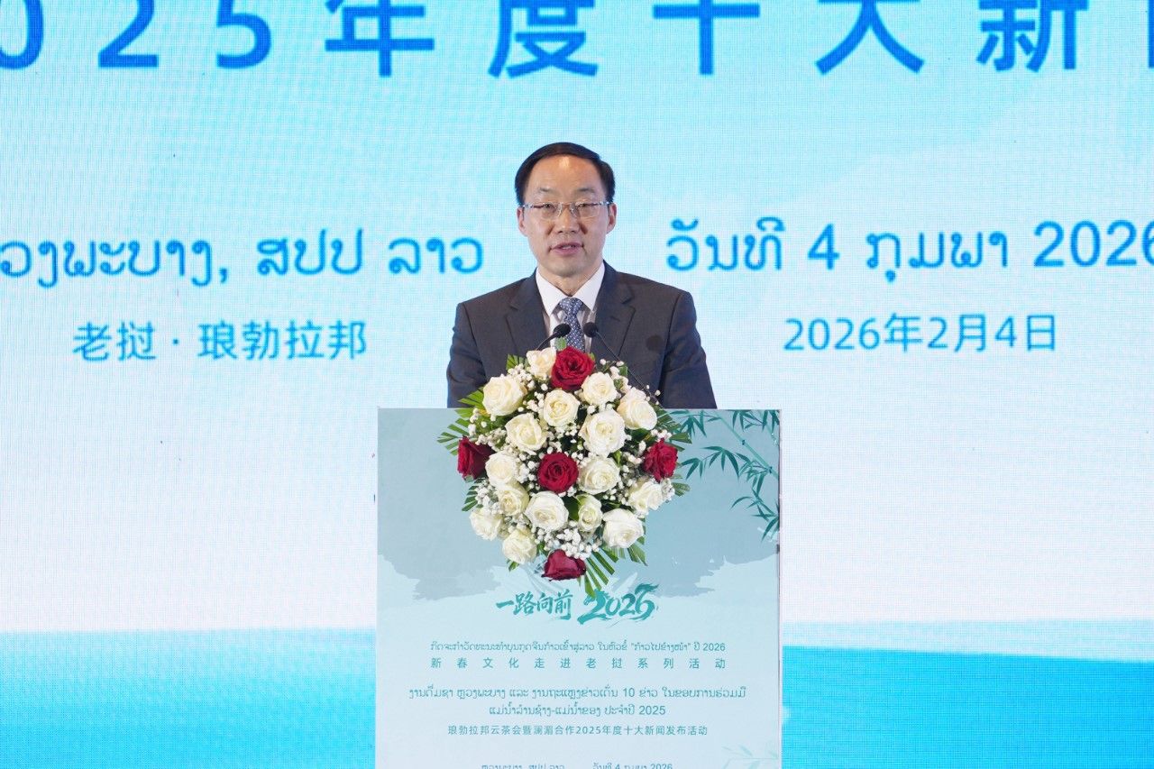 北京时间2月4日晚,“澜湄合作2025年度十大新闻”在老挝琅勃拉邦正式发布。中国外文局副局长于运全、老挝人民革命党中宣部副部长、中央理论委员会常务副主席坎蒙·占塔吉、老挝琅勃拉邦省委副书记坎拉·连巴迪、云南省委宣传部常务副部长蔡祥荣、中国驻琅勃拉邦总领事张社平、老挝驻昆明总领事邦当·巴萨帕迪等出席活动,中国外交部亚洲司参赞王德鑫视频致辞。还有来自中国和澜湄国家有关方面的专家学者代表200人参加此次活动。
