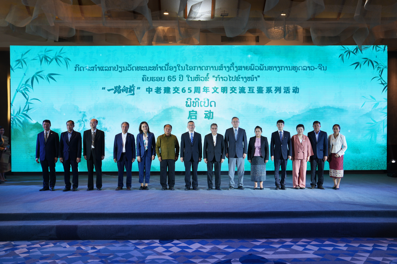 中外嘉宾共同启动了“一路向前”中老建交 65 周年文明交流互鉴系列活动。