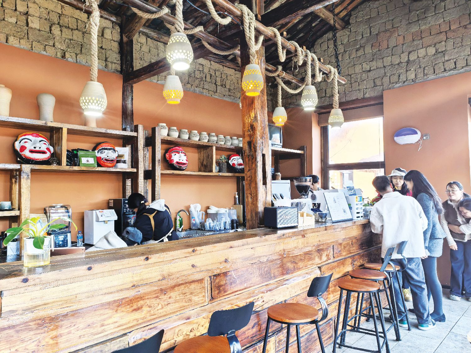 2026年元旦,“土陶居”正式敞开怀抱,成为连接传统与现代的窗口,也带动上百户村民共享旅游红利。其融合了传统陶土美学与现代生活方式的咖啡空间,尤其受到欢迎。本地村民杨植翠经过专业培训,已能熟练地为客人冲泡各式饮品,她捧着亲手调制的咖啡说:“这份工作,打心底里喜欢。”杨钧宇利用碗窑土陶创作的“土陶灯”系列作品,也通过社交平台吸引了众多关注。“没想到土陶与现代照明结合,能呈现如此独特的美。”许多网友通过线上渠道咨询定制,也因此认识了碗窑土陶。