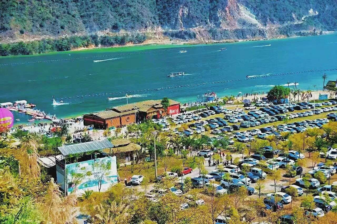 镜头转向云县。漫湾镇昔宜村“FUN浪·澜沧江”水上娱乐项目,大年初一单日游客量达4.5万人次。