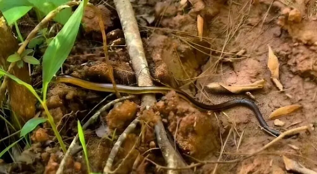 耿马县首次发现国家二级保护动物脆蛇蜥,棕黄色身体搭配白色或天蓝色横条纹,外形独特引人注目。