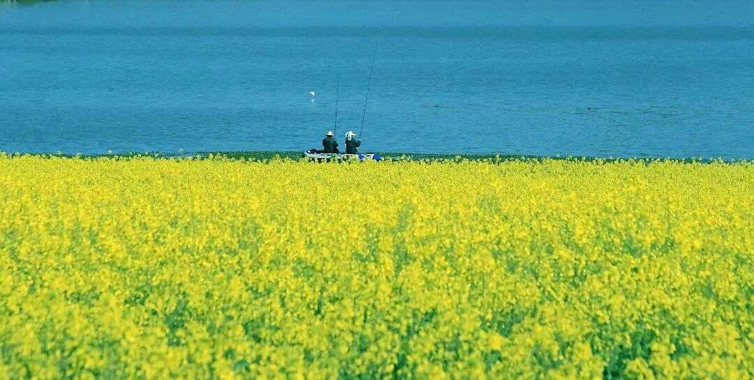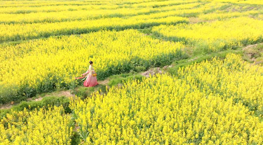 凤庆县勐佑镇河西自然村的油菜花开成金色海洋,金色花海与青山绿水、村庄民居交相辉映,构成了一幅生机盎然的春日田园画卷。