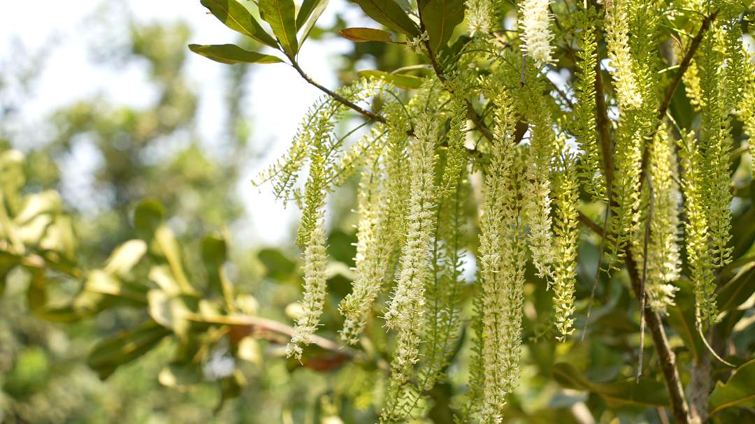 三月,临沧坚果进入盛花期,米白、淡黄,漫山繁花缀枝。清风拂过,清甜花香漫溢,引来蜜蜂穿梭花间,为秋天的丰收奏响序曲。