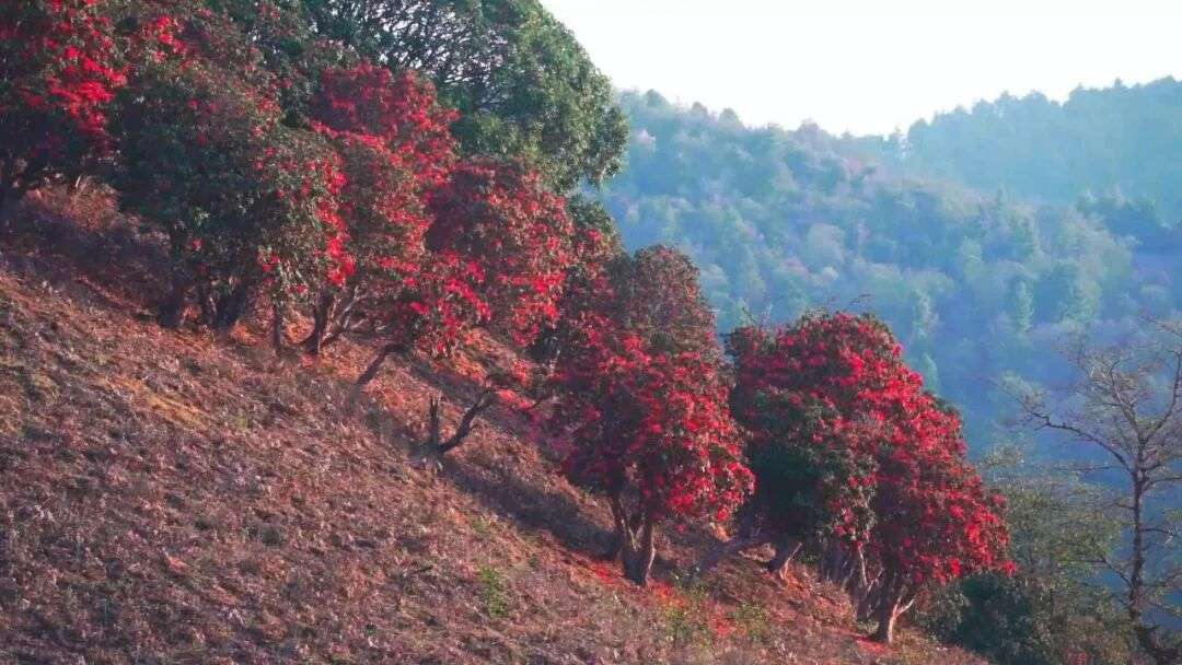 双江勐库大亮山,野生杜鹃从山脚燃至山巅,雾中朦胧似仙子,晴日热烈如油画,把整条山脉都烧得滚烫。