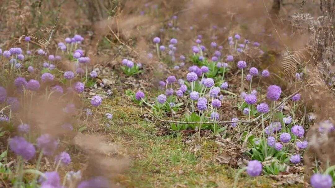 镇康县勐捧乡的高山草甸,球花报春迎风绽放,粉紫色花球亭亭玉立,在青山绿草间格外耀眼,成为春日里最明媚的色彩。