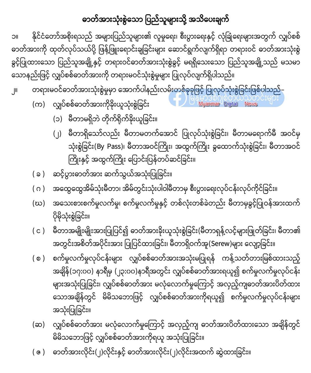 နိုင်ငံတော်အနေနဲ့ လူမှုရေး၊ စီးပွားရေးနှင့် လုံခြုံရေးများအတွက် လျှပ်စစ်ဓာတ်အားကို ထုတ်လုပ်သယ်ပို့ ဖြန့်ဖြူးရောင်းချခြင်းများ ဆောင်ရွက်နေရာ တရားဝင် ဓာတ်အားသုံးစွဲခွင့် ပြုထားသော ပြည်သူအချို့နှင့် တရားဝင်သုံးစွဲခွင့် မရရှိသေးသော ပြည်သူအချို့ဟာ မသမာသောနည်းဖြင့် လျှပ်စစ်ဓာတ်အားကို တရားမဝင် သုံးစွဲမှုများ ပြုလုပ်လျက် ရှိတာကို တွေ့ရှိနေရတယ်လို့လည်း ထုတ်ပြန်ချက်မှာ ပါရှိပါတယ်။