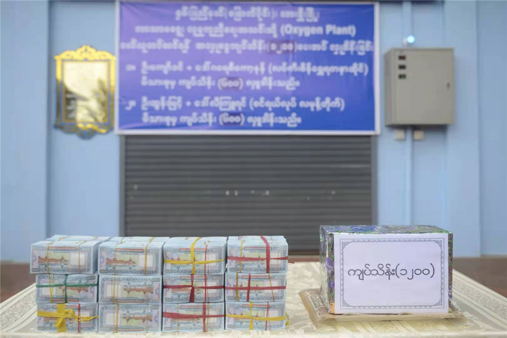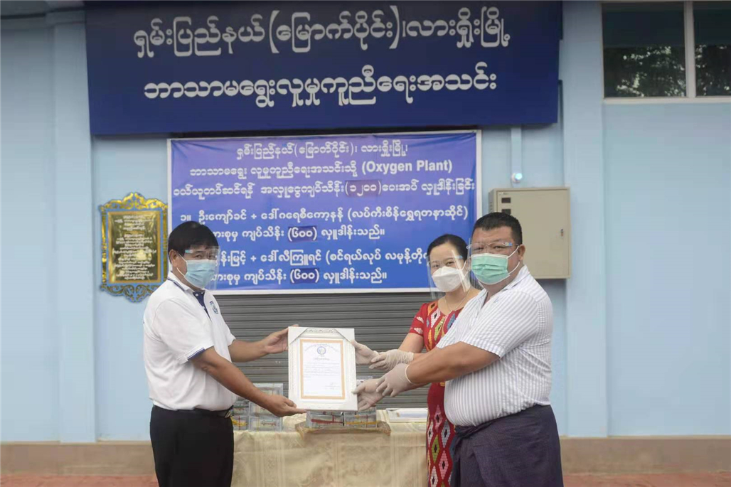 据了解,聂惟仁会长和赵腾鲲副会长当天捐赠1.2亿元善款,已经购买到一台大型制氧机,交由设在“北掸邦腊戍市不分区域宗教协会”的“腊戌制氧厂”安装使用。正式投产后,可日产50L容量160-180个氧气罐所需的氧气,免费提供给各族重症病患者使用。