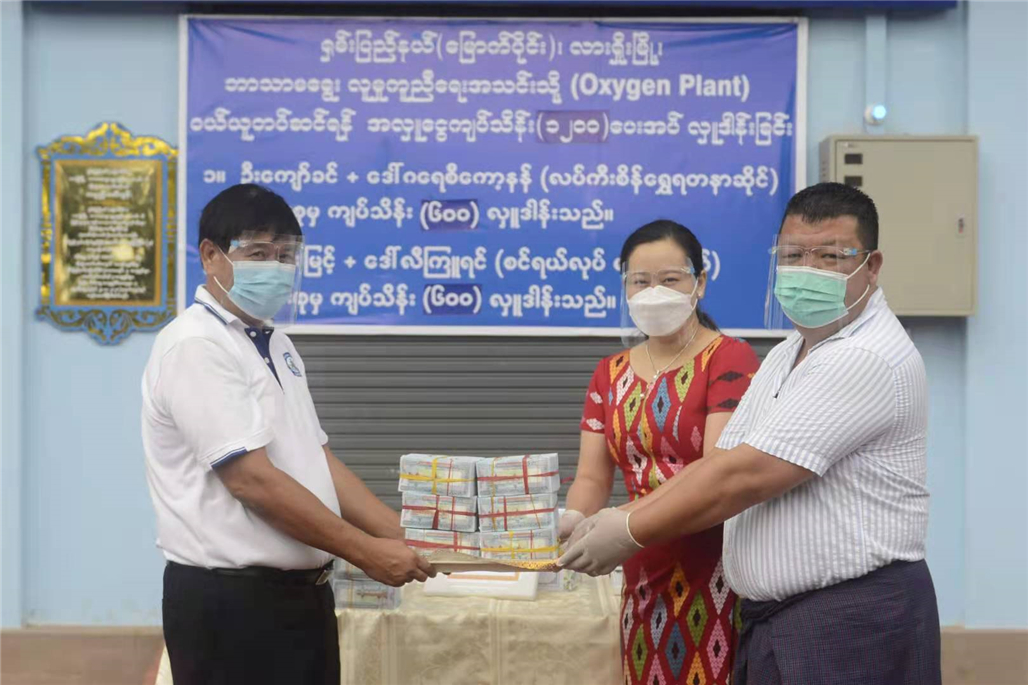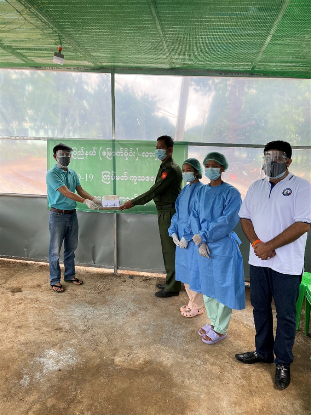 ↑温惠強先生代表聂惟仁会长向腊戌新冠肺炎隔离点捐赠200万元