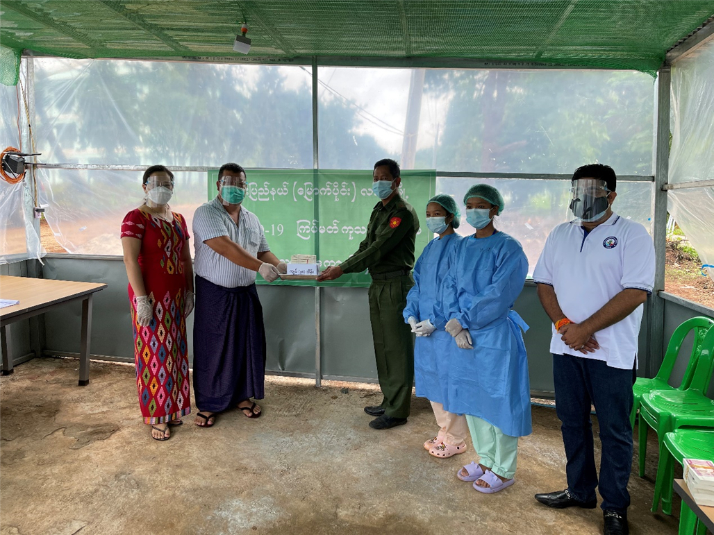 捐赠活动于2021年7月23日上午在腊戌市社会福利协会办公室举行,腊戌社会福利协会主席钟洁芳先生代表福利协会接受了捐赠。此次爱心捐赠活动,聂惟仁会长和夫人赵丽珠阖家捐赠6000万元,聂会长因本人在国外,由亲友温惠強先生代表捐赠;聂会长的内弟赵腾鲲副会长及夫人刘润仙女士阖家捐赠6000万元。捐赠仪式结束后,赵腾鲲、刘润仙、温惠強先生来到腊戌市新冠肺炎隔离点,温惠強先生代表聂惟仁会长向隔离点捐赠了200万元善款,赵腾鲲、刘润仙伉俪随也向隔离点捐赠了200万元善款。