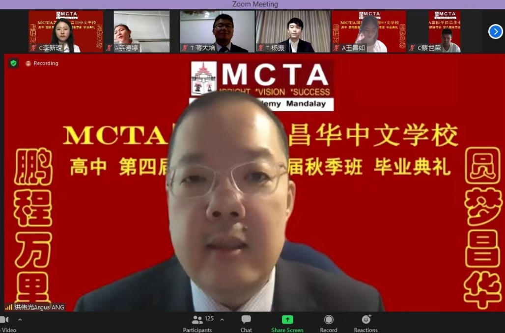 【缅甸金凤凰报讯】2021年7月24日早上六点半,MCTA昌华国际学院中文高中部第四届春季班、第九届秋季班线上毕业典礼隆重举行。