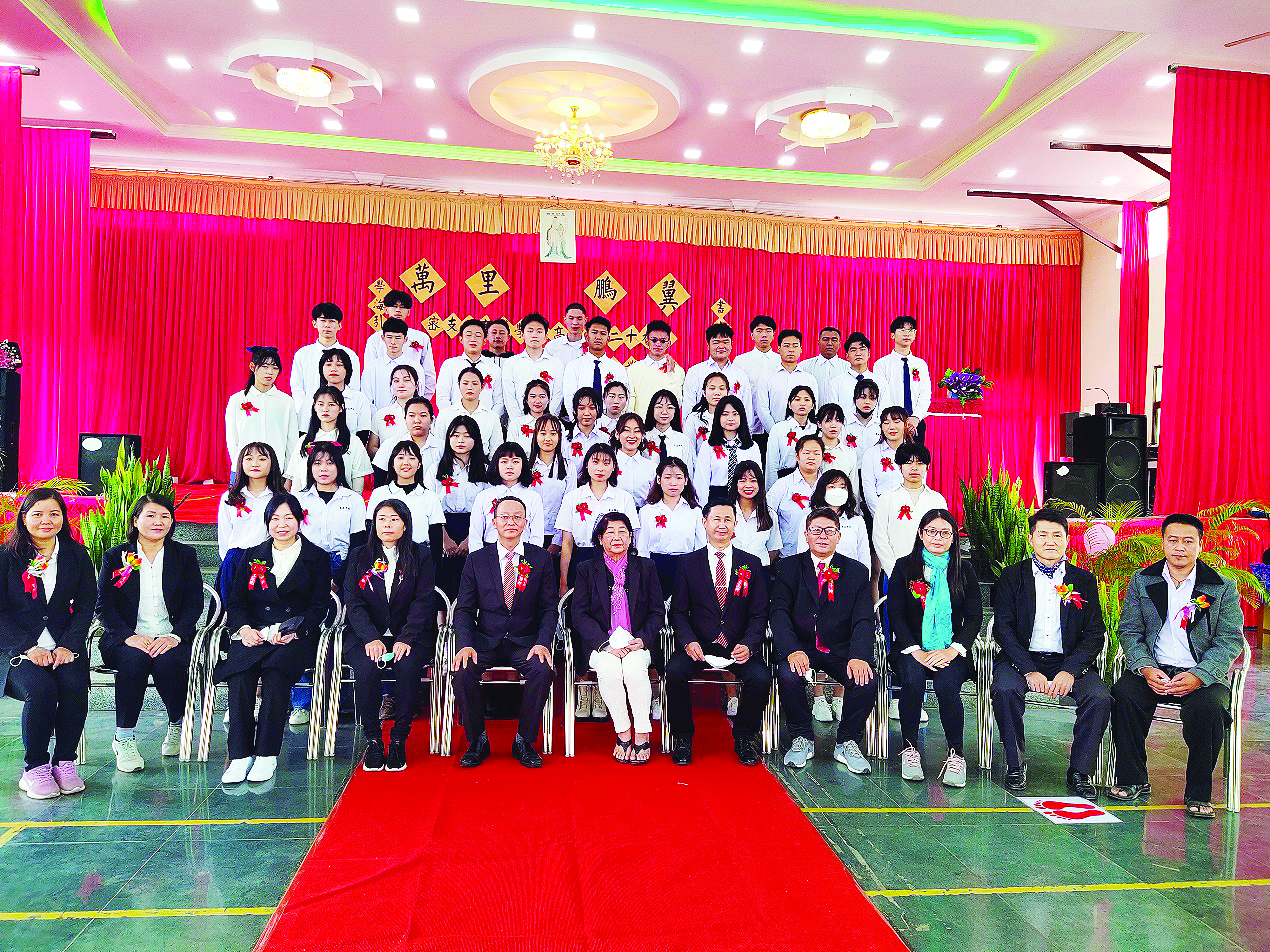 【本报讯】密支那育成学校自2020年初进入“网课时代”之后,凡是校内的重大活动均遭到了取缔,而学生校园生活中最难忘的活动“毕业典礼”也不例外,这让应届毕业生深感遗憾。时至目前,有些地区虽是以线上的方式举办各种类型的毕业典礼,但均不能满足学生们的情感需求。故本校于2021年12月26日,在疫情尚未停歇之际,为圆毕业班学生之愿,遂简单的在中学部综合活动中心隆重举办了高中第二十九届的毕业典礼,活动也不同以往的方式,不邀请校外各团体领导、学生家长,和小学部老师,只有行政教师、高三所有老师和高中三年级毕业学生齐聚一堂,属封闭式的活动,以免拥挤而造成疫情传播。