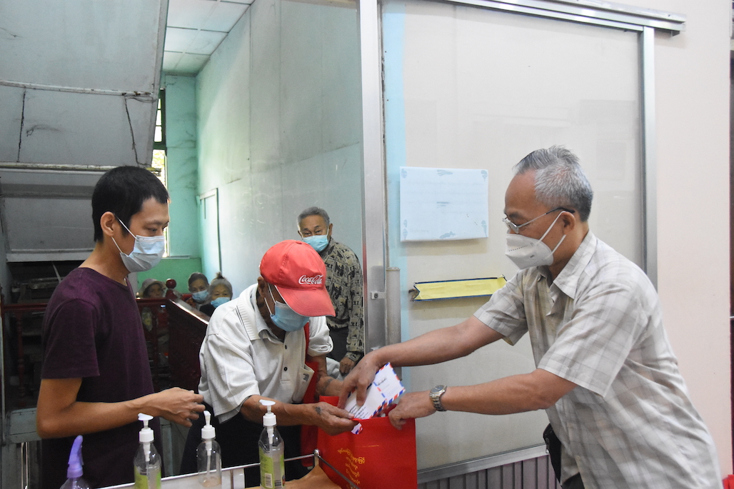 为使老年人生活更舒适,缅甸华侨华人慈善会每两个月一次向年老无依的侨胞发放“年老无依补助金”。