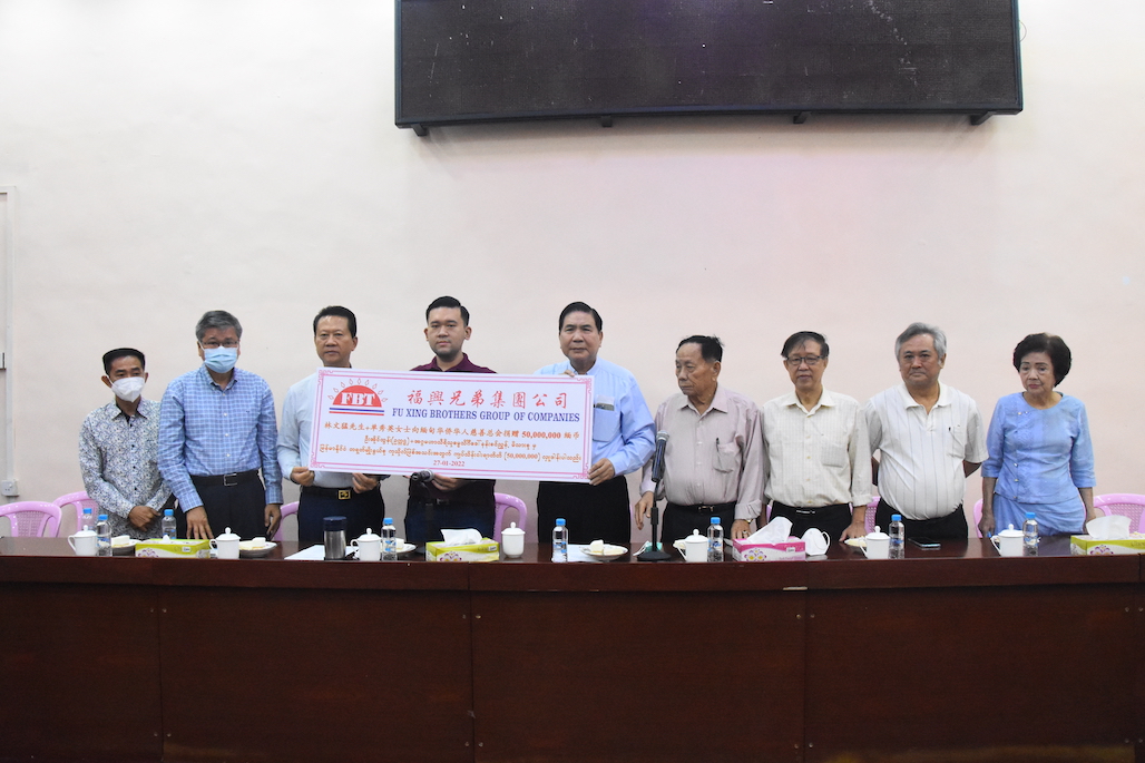 为回馈社会,弘扬慈善精神,缅华侨领和爱心人士纷纷热心向慈善会捐款。据慈善会介绍,缅甸华侨华人慈善会会长张文钦捐赠一亿缅元,缅甸中华总商会会长、福兴兄弟集团公司董事长林文猛及夫人单秀英女士捐赠5000万缅元,缅甸中华总商会捐赠1000万缅元,缅甸福建同乡总会捐赠3000万缅元,缅甸福州三山同乡会捐赠3000万缅元,缅甸建德总社大董黄庆燕捐赠1000万缅元,华中校友会会长雷启泉捐赠1000万缅元,缅甸福建同乡总会会长吕振膑捐赠500万缅元,华友青年团捐赠100万缅元,缅甸华中校友会捐赠100万缅元,缅甸南洋中学校友会捐赠100万缅元。