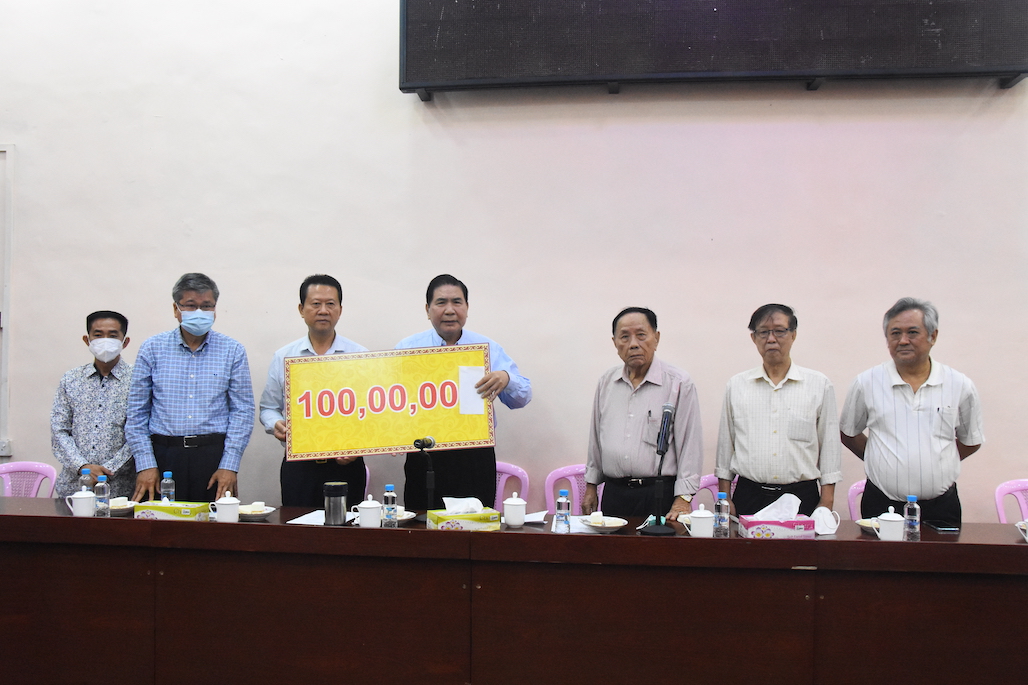 缅甸华侨华人慈善会会长张文钦,缅甸中华总商会会长林文猛,缅甸福建同乡总会会长吕振膑,缅甸南洋中学校友会荣誉主席陈庚铭,缅甸南洋中学校友会主席黄如信,缅甸广东工商总会常务副会长何其林,仰光旅缅潮州会馆常务副会长谢永发,缅甸华中校友会副主席许百新等侨团侨社长辈们出席当天的捐赠仪式。