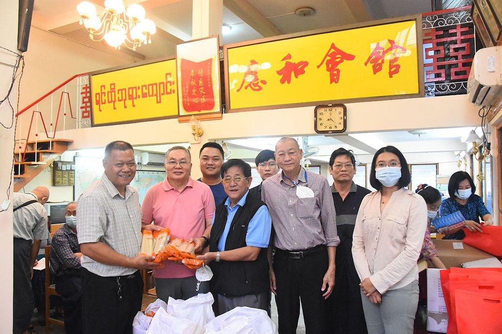 仰光应和会馆理事长叶碧青、副理事长朱君强、候燊泉、罗达邦,理监事梁伟谦、叶新样、朱棉中、黄荣平、梁锐敏、钟锐飞、候光耀,青年组蓝志榮、黄碧华、巫祖宝等出席当天发放春节福利金红包仪式。