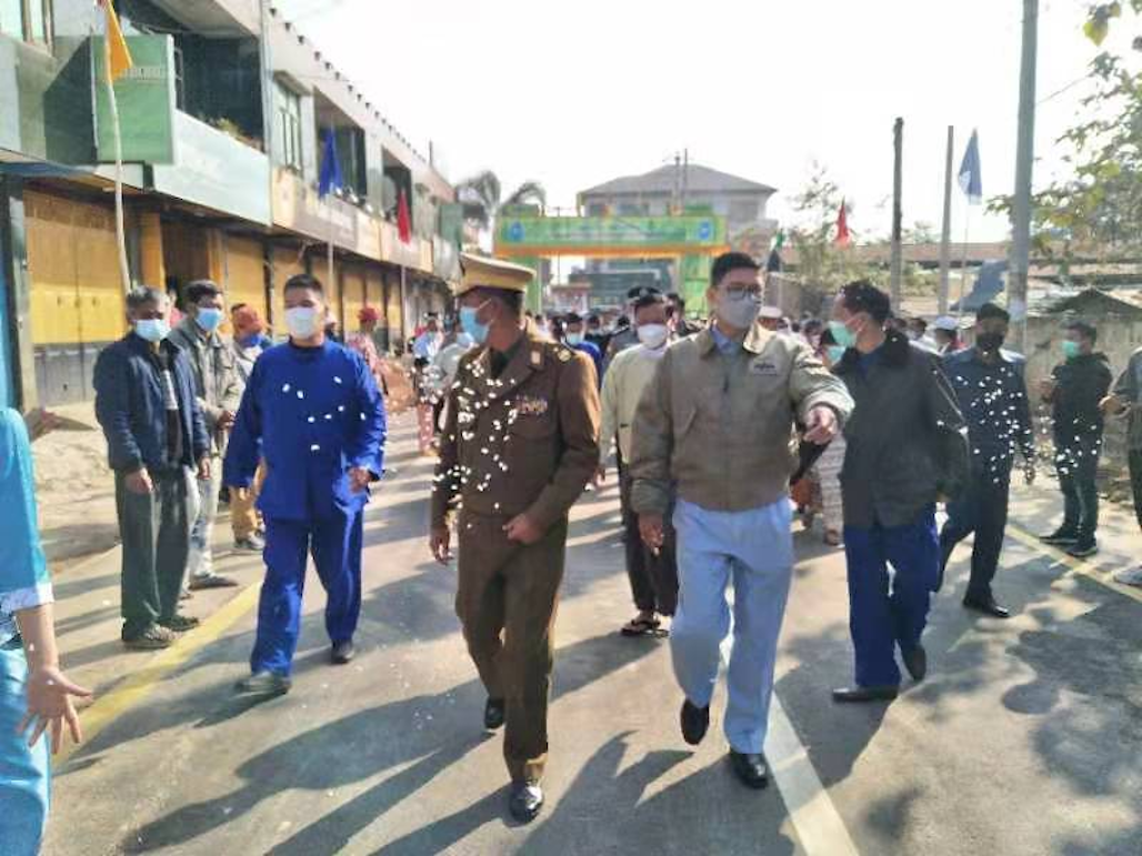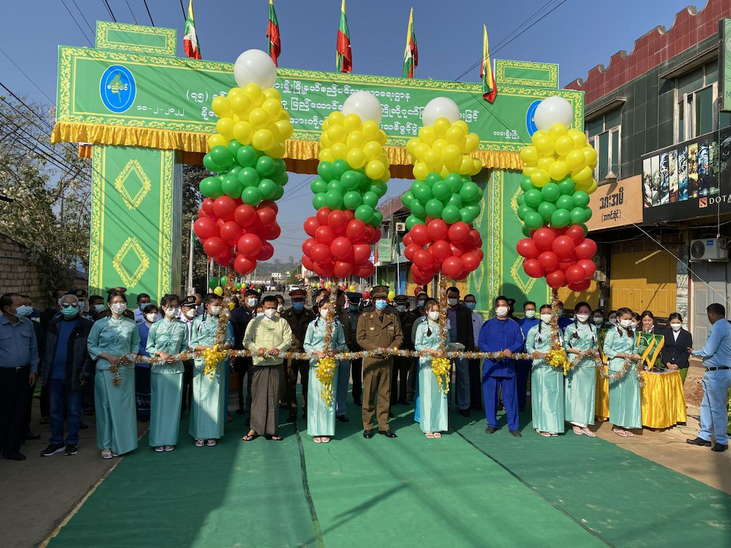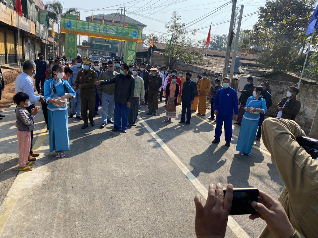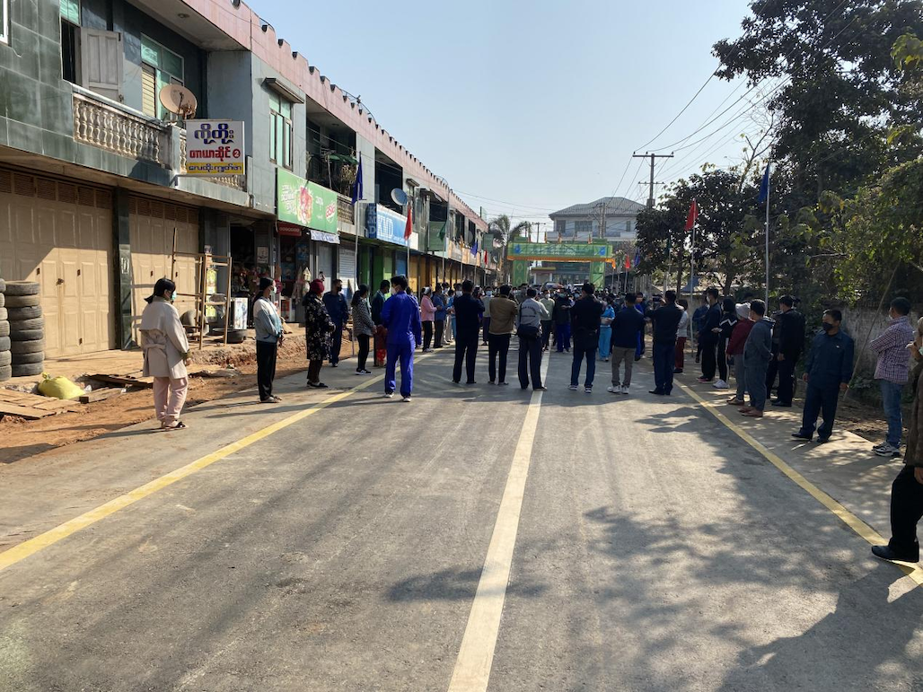 【金凤凰中文报记者叶星腊戌报道】户户相连通大道,家家共济建康庄。2月11日上午,腊戌双龙村隆重举行修筑阔洛路(丹伦)第一期工程竣工典礼,村民们欢天喜地,诚邀东北军区、北掸邦省政府、市政府官员参与剪彩仪式,一同见证双龙村华人群众自治建设家乡发生的巨变和取得的成就。