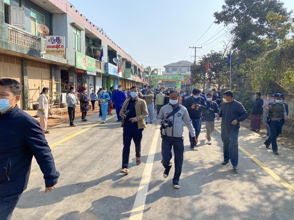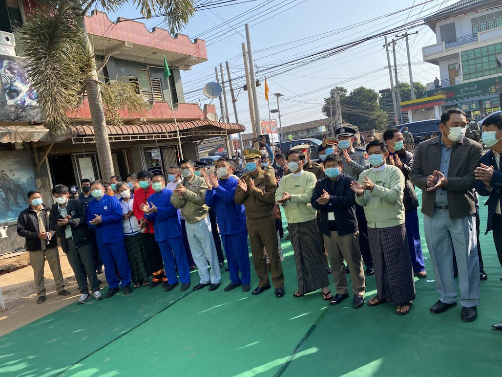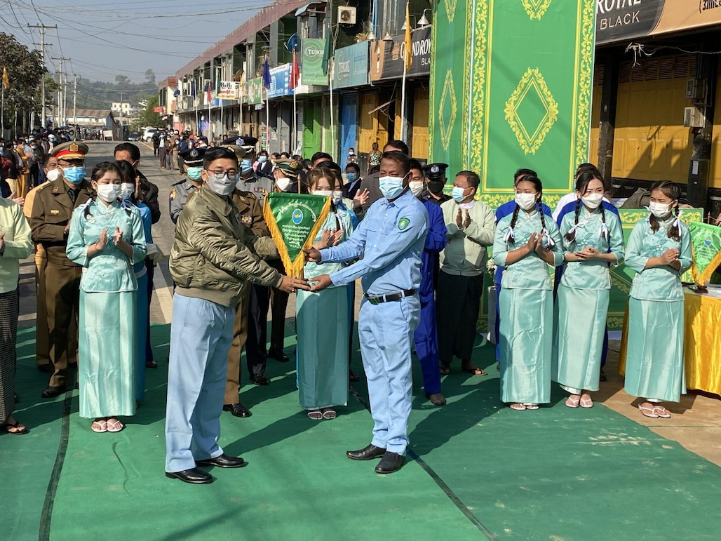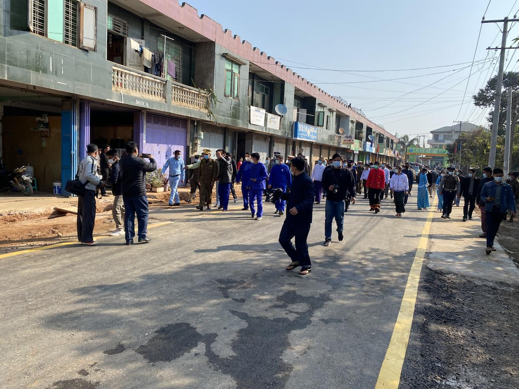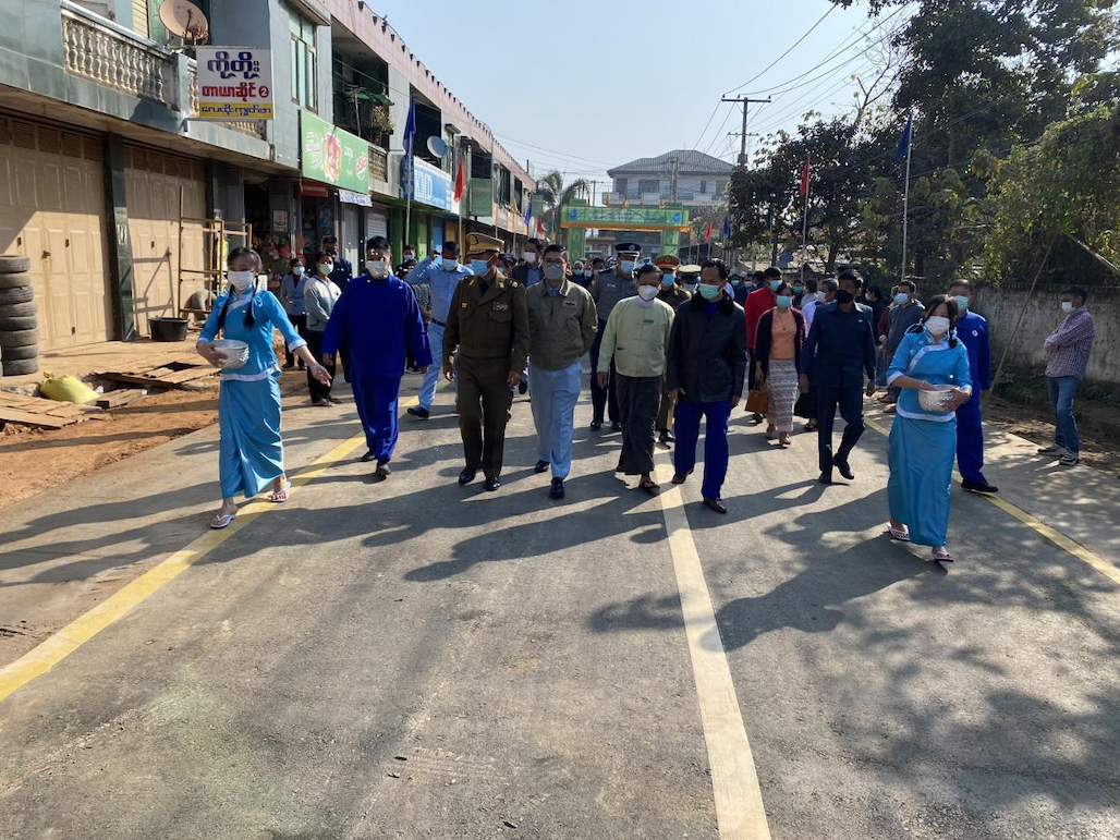 【金凤凰中文报记者叶星腊戌报道】户户相连通大道,家家共济建康庄。2月11日上午,腊戌双龙村隆重举行修筑阔洛路(丹伦)第一期工程竣工典礼,村民们欢天喜地,诚邀东北军区、北掸邦省政府、市政府官员参与剪彩仪式,一同见证双龙村华人群众自治建设家乡发生的巨变和取得的成就。