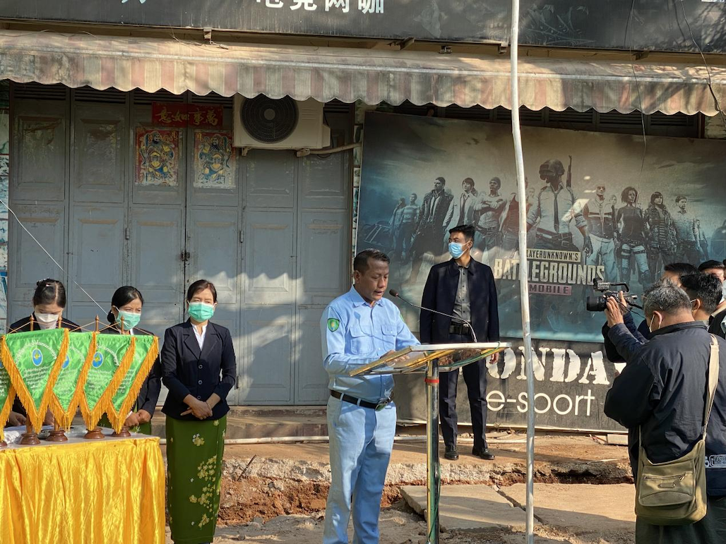 在剪裁仪式上,北掸邦城建厅厅长 thin ko ko致辞时说,腊戌华人社区双龙村在缅甸民族节75周年钻石庆莅临之际举办修建社区主干道竣工剪裁仪式意义非凡,双龙村群众自助互助,集资修建了阔洛路这条标准的城区交通要道,既方便了群众出行,也改善了区域道路不佳的状况,是腊戌地区群众自发建设家乡的典范。