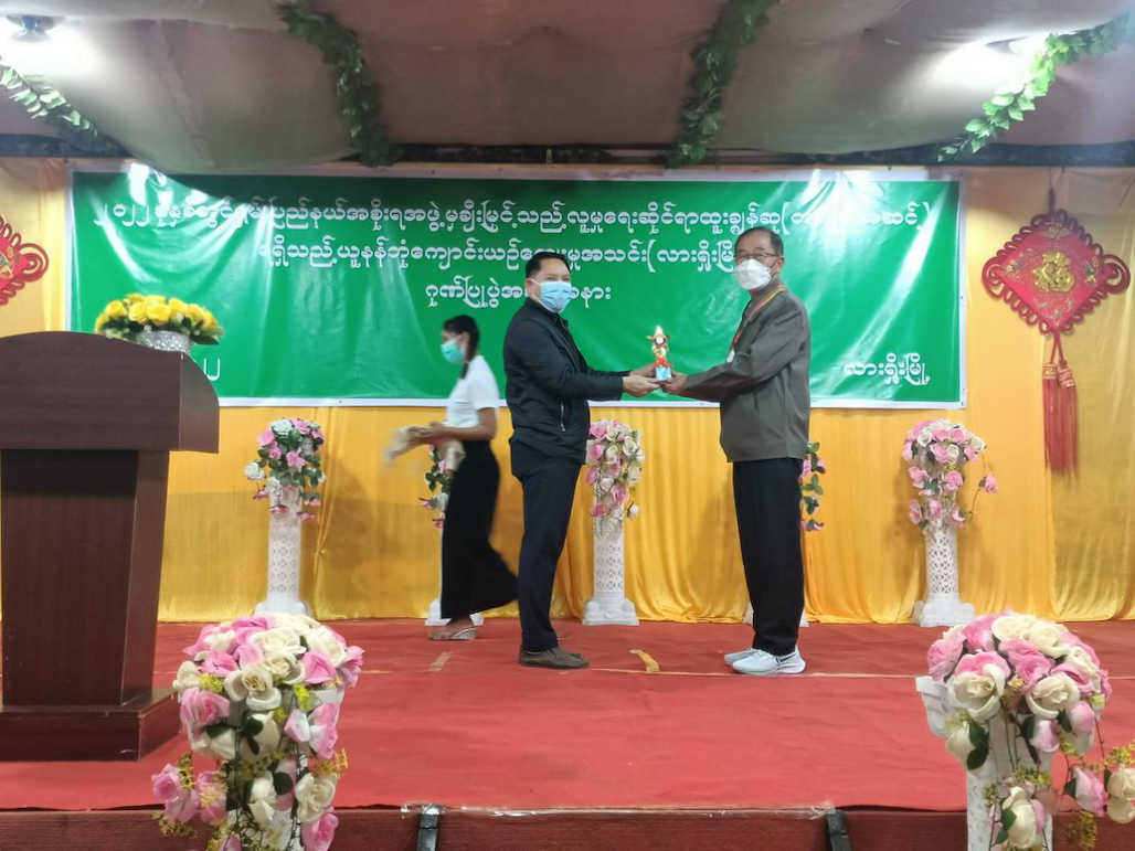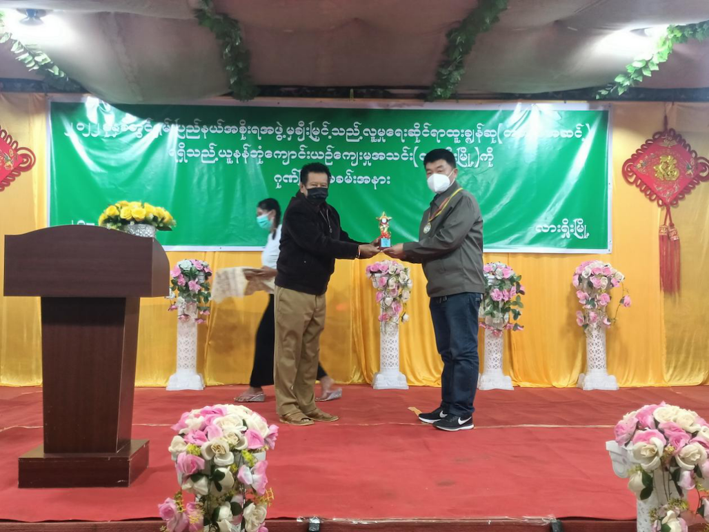 吴缪敏吞县长致辞说:腊戌云南同乡会在地区抗疫救援活动中有杰出的表现和突出的贡献,你们是华人社团中敢于挺身而出、义无反顾地开展慈善活动的典型和最伟大的逆行者,政府会永远记住并感谢你们在疫情最严峻的时候冒着风险,多次去救助那些有需要的各族市民群众,正是因为有腊戌云南会馆这样热心、有社会责任感的华人社团的参与和帮助,本地区的疫情才会有效地得到控制,不少底层弱势群众因为你们的救助才得以度过难关。今天,政府颁发给你们“抗疫救援公益事业杰出贡献奖”,你们当之无愧!
