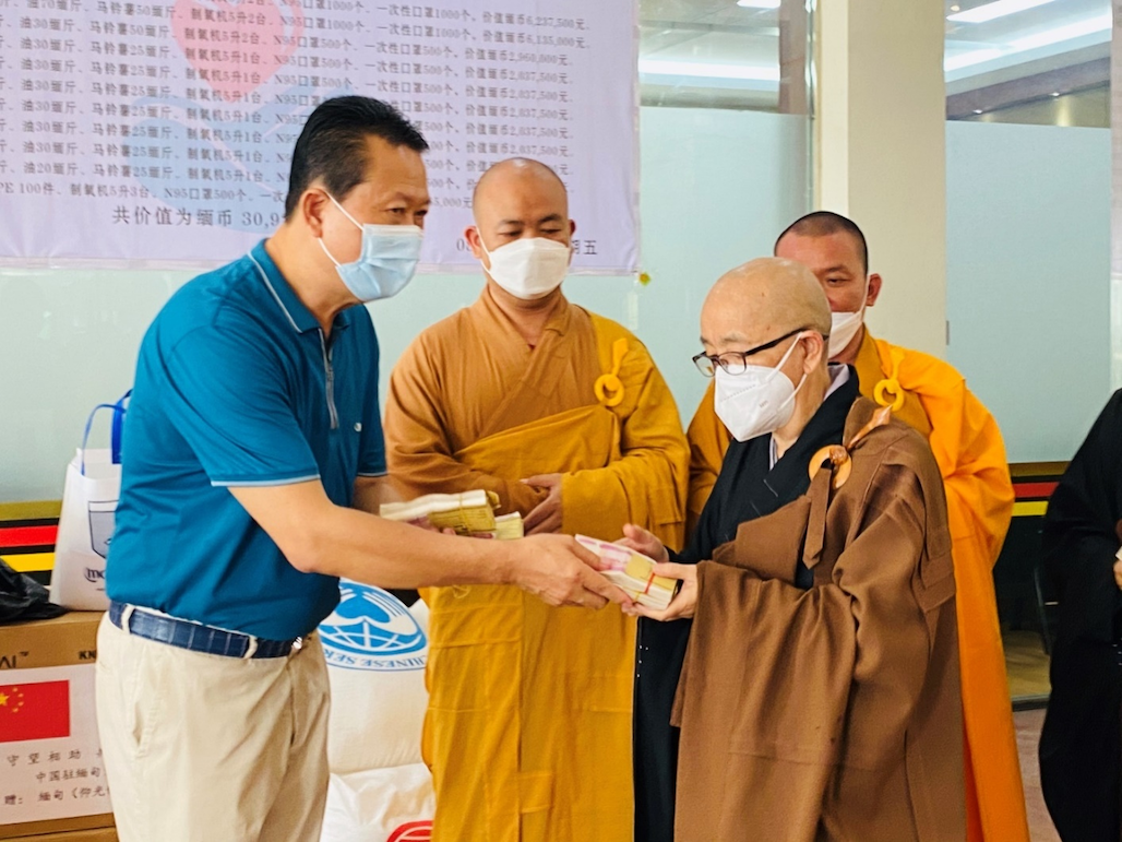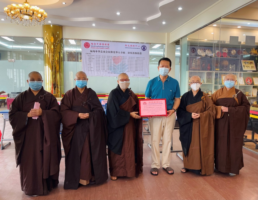 缅甸中华总商会、仰光华助中心再向仰光华人寺庙、诊所捐款捐物