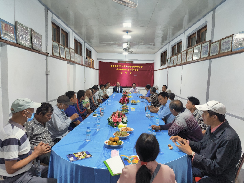 缅甸传统佳节泼水节暨新年到来之际,缅北华文教育联合会会长尚兴玺先生,带领常务副会长杨定强先生,秘书长李宏保先生,走访瑙丘地区东色宏华学校,并在宏华学校召开“瑙丘地区华校座谈会”。出席座谈会的有瑙丘瑞碧纽果文学校校长杨威先生,副校长杨家志先生,肯琳果民学校董事长匡自元先生,肯琳村村长杨平从先生,东色宏华学校校长杨荣吉先生。