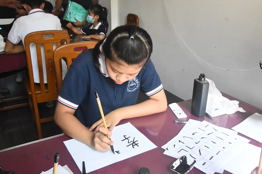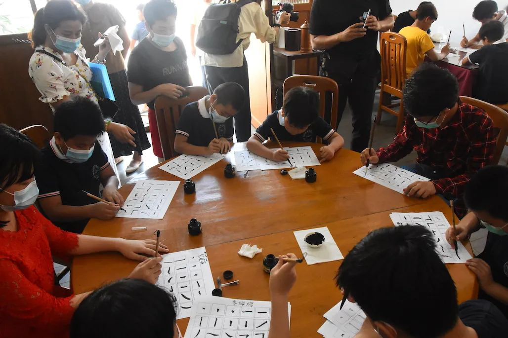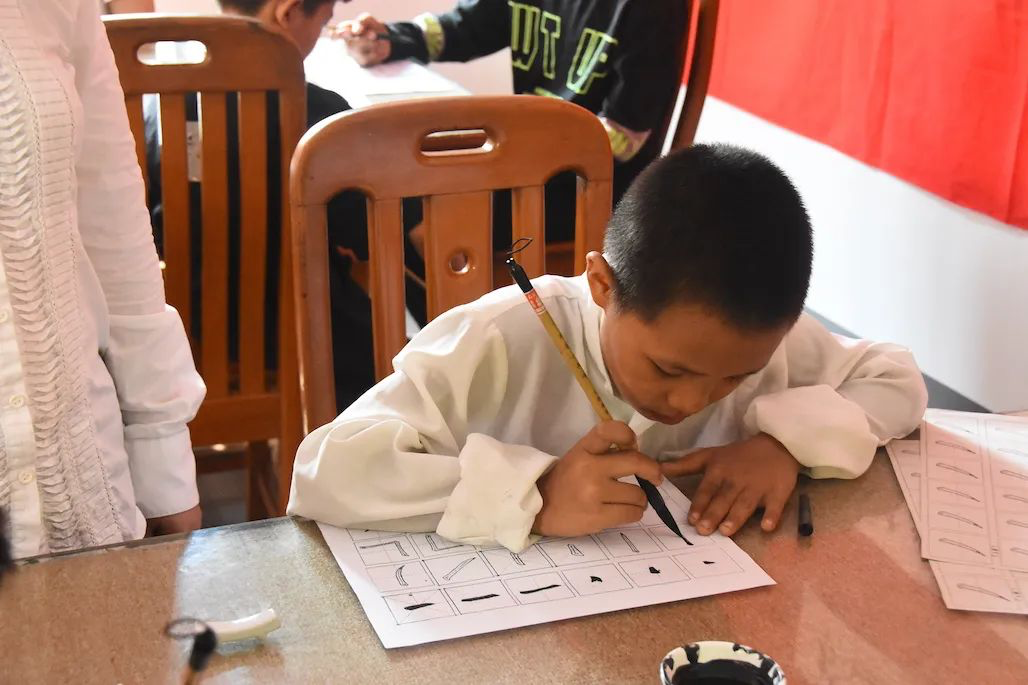 都是“未来的小书法家”!中国驻缅甸大使馆文化处与缅华书画协会共同举办书法体验活动