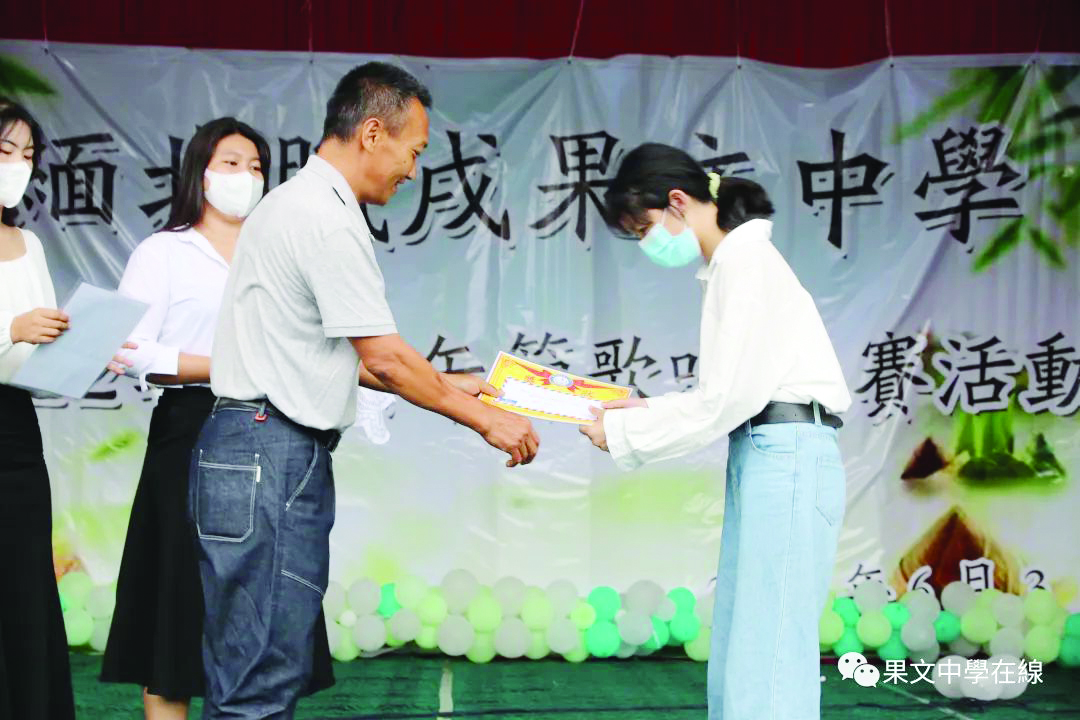 6月3日早6时,果文中学2022年端午文化常识普及实体活动线下举行歌舞赛暨颁奖大会。魏开智董事长、李绍清监事长、杨文权会长、马以忠副校长、何忠强副校长、央正礼常务副会长,杨天泽副会长,赵仁发副董事长、杨世成建设组组长、段胜中秘书长、李建明秘书、李义元副财务长、李承义董事、杨成康董事、钟发盛董事、李嘉福董事、罗家诚董事、江长寿董事、倪光福副会长,杨国华董事、段绍海校友等莅临学校指导活动,与全体实体课师生一起开展各项活动。大会由李家润老师和曹明霜同学主持。