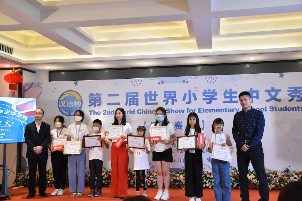 在6月19日的决赛现场,与会嘉宾和评委分别为小选手们颁发了奖状。灿烂的笑容洋溢在每一位获奖选手的脸上,这是他们努力学习中文的结晶,更是他们对汉语发自内心的热爱。
