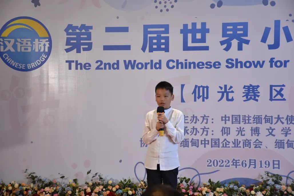 【本报记者胡安娜、实习记者赵嘉嘉仰光报道】6月19日,由中国驻缅甸大使馆主办,仰光博文学校承办,缅甸中国企业商会和缅甸金凤凰报社协办的第二届“汉语桥”世界小学生中文秀缅甸仰光赛区决赛在缅甸中国企业商会大会议厅隆重举行。