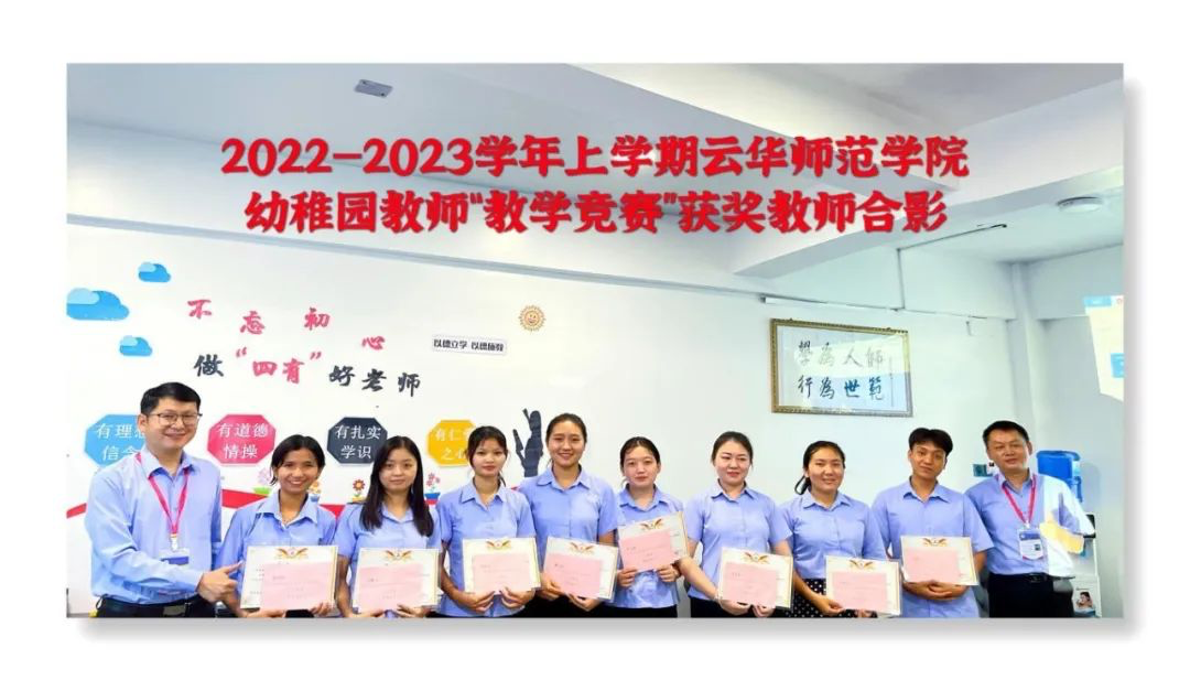 这次教学竞赛,由杨园长和段老师评课,指出了课堂的成功之处,同时交流了需要改进的地方。通过录课把老师们的课堂视频放到大屏幕上让上课的老师听自己的课,找出自己的不足。通过竞赛,我们看到了老师们的爱岗敬业精神,参赛老师认真对待,准备充足,给我们呈现出了精彩的课堂表现。学校非常重视本次课赛,对本次课赛给与高度评价,云华师范学院代理院长杨周老师出席了课赛表彰大会,并对表现优秀的教师颁发奖状和奖金。一等奖由蔺应茹老师获得、二等由杨丽琪老师和罗敏玉老师获得、三等奖由林晓娟老师、姜秋明老师和严雯雪老师获得、优秀奖由李冰冰老师和沙国宇老师获得。