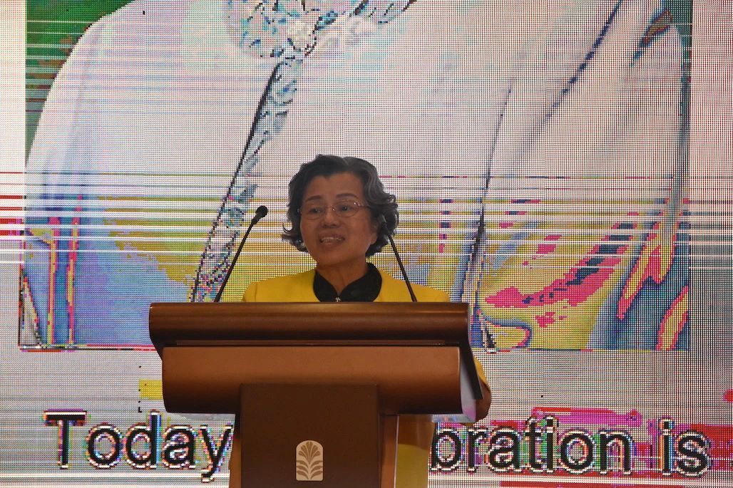 随后,东方学校董事长曾圆香致辞,2022年6月,九层高的东方学校新教学大楼正式投入使用。上了两年网课的同学们,都高兴的回到了新校园上课。很欣慰,在二十年后的今天,东方学校终于拥有了专属于自己的校园,终于拥有了一个像样的家,这一切都来之不易。缅甸的华文教育,仍然存在诸多问题、困难和挑战。但是这些问题、困难和挑战,就需要年轻一辈的后继者来承担,来突破。为此,我们也努力让我们的校董会成员年轻化,我们的教学管理团队也年轻化。古诗云:“问渠哪得清如许,为有源头活水来。”东方董事会有了生力军的加入,相信他们一定能成为推动东方学校发展的动力和源泉,华文教育的发扬和传承,已经后继有人。教育是百年大业,需要一代又一代人的付出、奉献、坚守和传承。前人已经给我们做了很好的楷模,后来者当不忘初心,承继好的传统;勇于创新,谱写历史新篇章,不负捐助者的苦心,不负社会寄予我们的重托和希望。