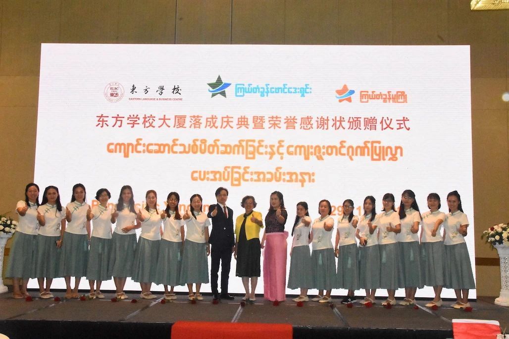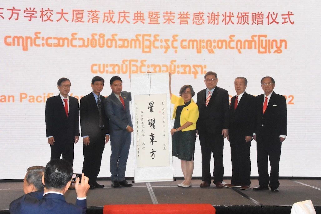 2002年东方语言与商业中心从一间小小的幼儿园开始起步,20年后的今天东方学校已经稳稳的伫立在缅南仰光,努力的填补着五十年前缅南华文教育的遗憾,东方学校的落成和硕果属于缅华各界的侨领和侨团侨社的爱与关怀。当天,东方学校荣誉董事长李松枝、董事长曾圆香、校董陈庚铭、副校长王崇喜、主任黄碧杏、校务委员会委员,彗星基金会主席黄庆燕、秘书黄如信、财务杜子宏、成员骆锡隆、陈大木等代表所有师生向支持和赞助建校的各侨团和热心人士颁赠感谢状,表示感谢与敬意。