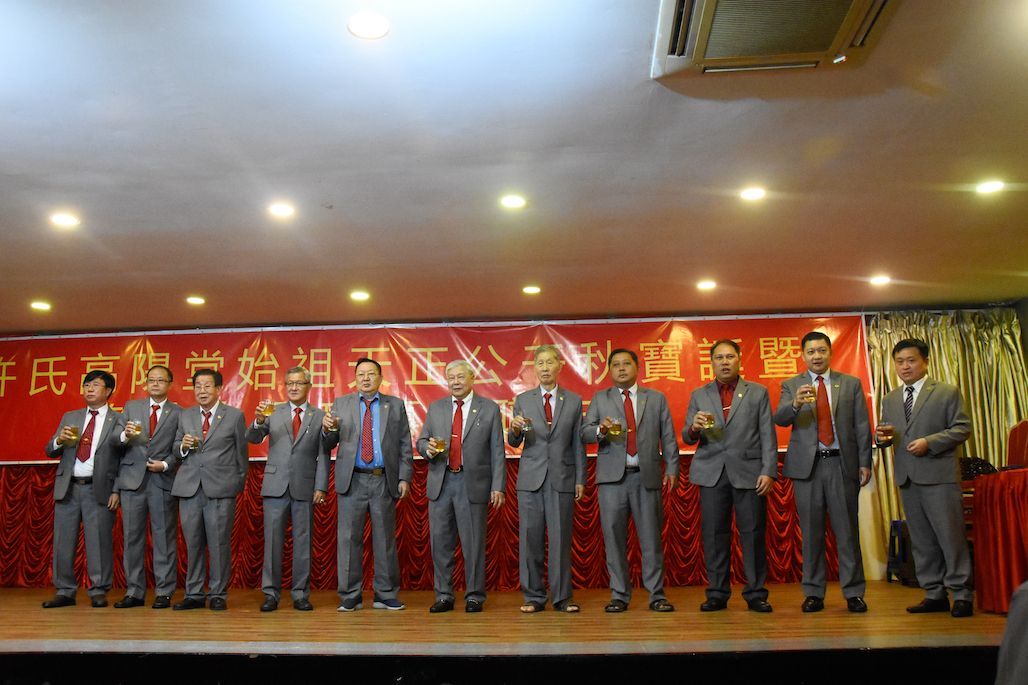当晚的宴会热闹、祥和,各地宗亲举杯畅饮,互诉宗情。为感谢大家的光临,缅甸许氏高阳堂全体理监事们上台向许氏宗亲们敬酒,并向宗亲介绍了第十九届理监事的全体成员。
