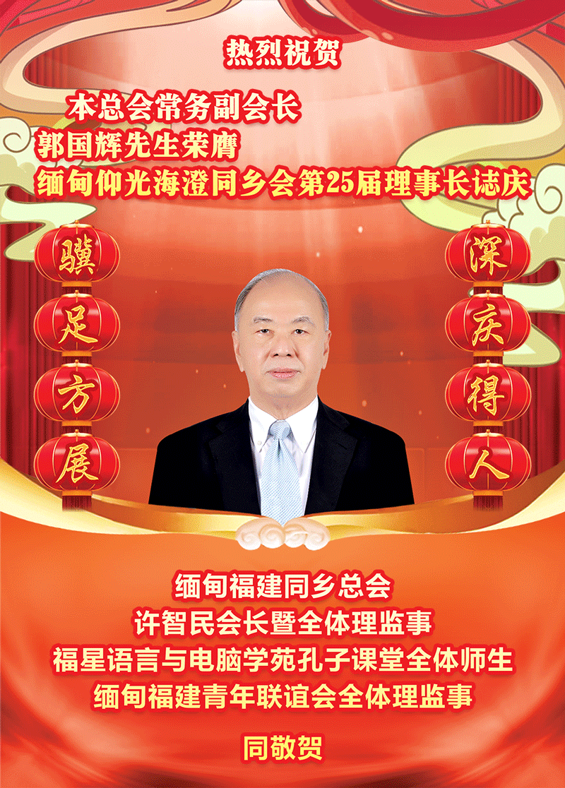 缅甸福建同乡总会、福星语言与电脑学苑孔子课堂、福建青年联谊会共贺郭国辉先生荣膺缅甸海澄同乡会第25届理事长