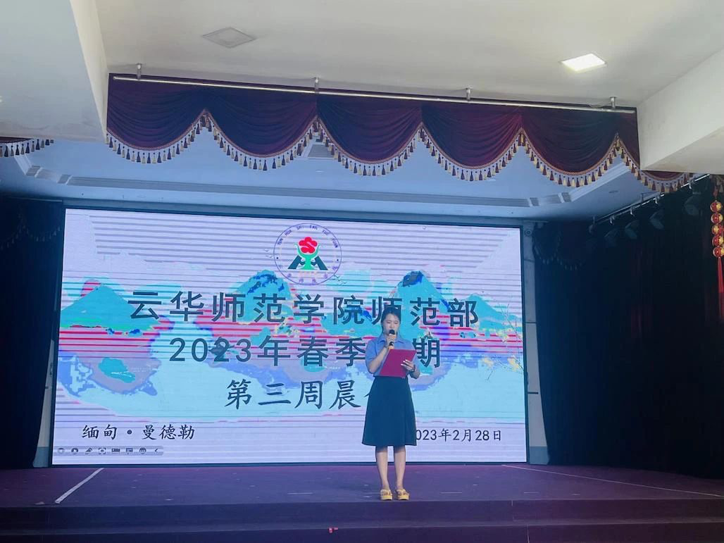 2023年2月28日早上10点,新学期的师范部晨会在云华师范学院四楼报告厅举行。晨会由王磊仙老师主持,云华师范学院杨周代理院长及师范部全体教师参加了本次晨会。